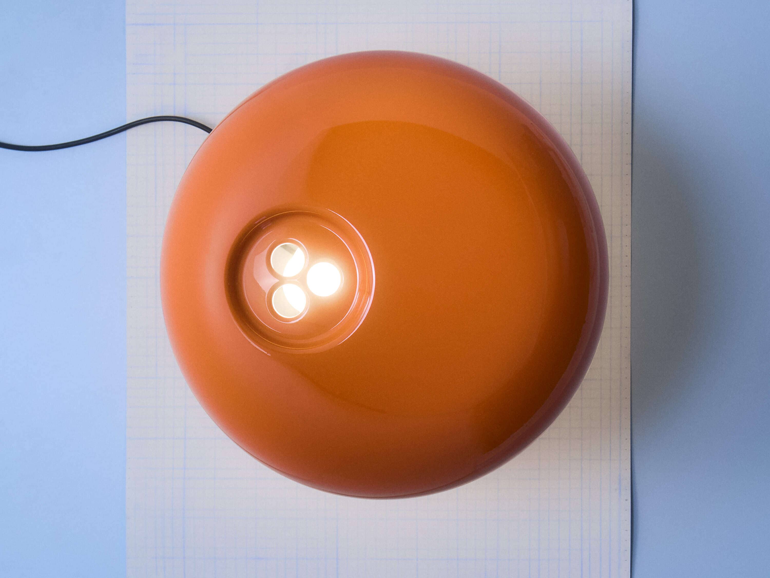 The playful personas of the Castiglioni brothers are evident in their Snoopy design, named for the beloved cartoon character and featuring a distinctive, light-hearted shape. The original debuted in 1967, and this version was reintroduced in 2003 with updated technology.