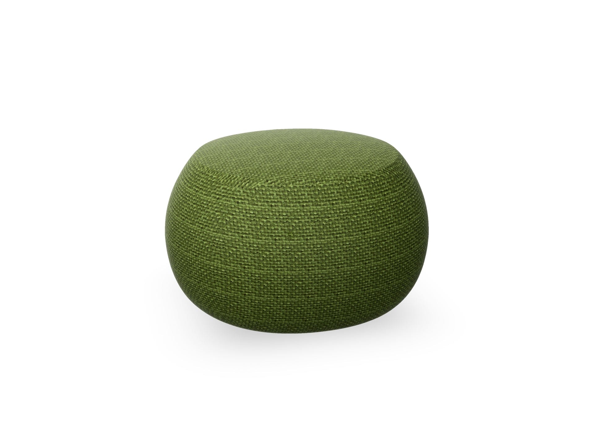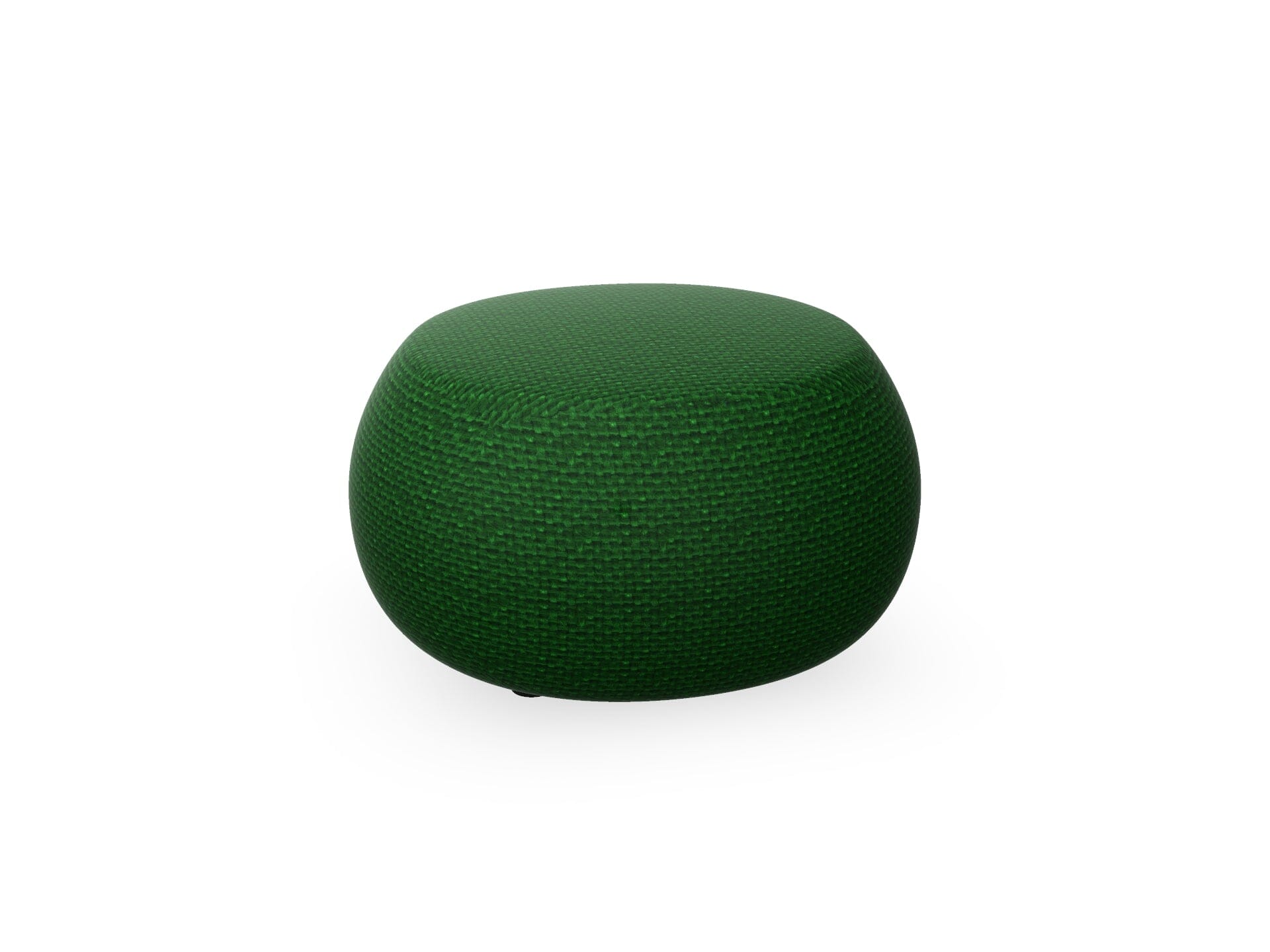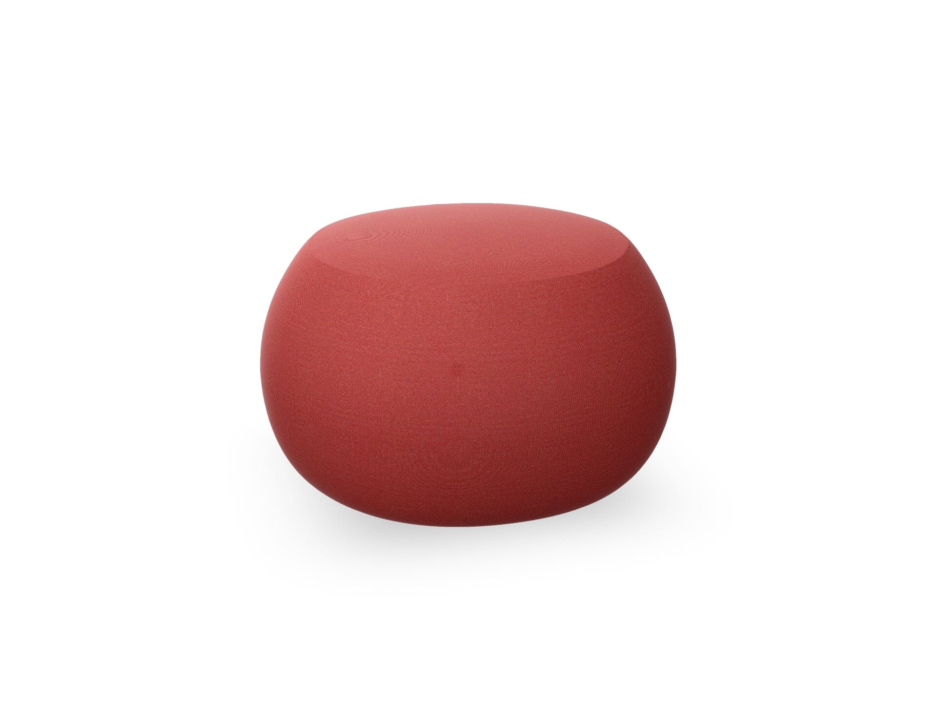 One small seat ottoman. Upholstery available in fabric, leather, faux leather or customer's material. A version suitable specifically for outdoor is also available, featuring a special flow-through internal foam and a polyester upholstery.