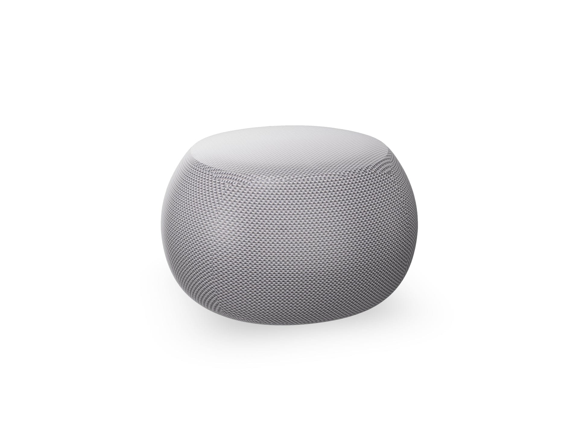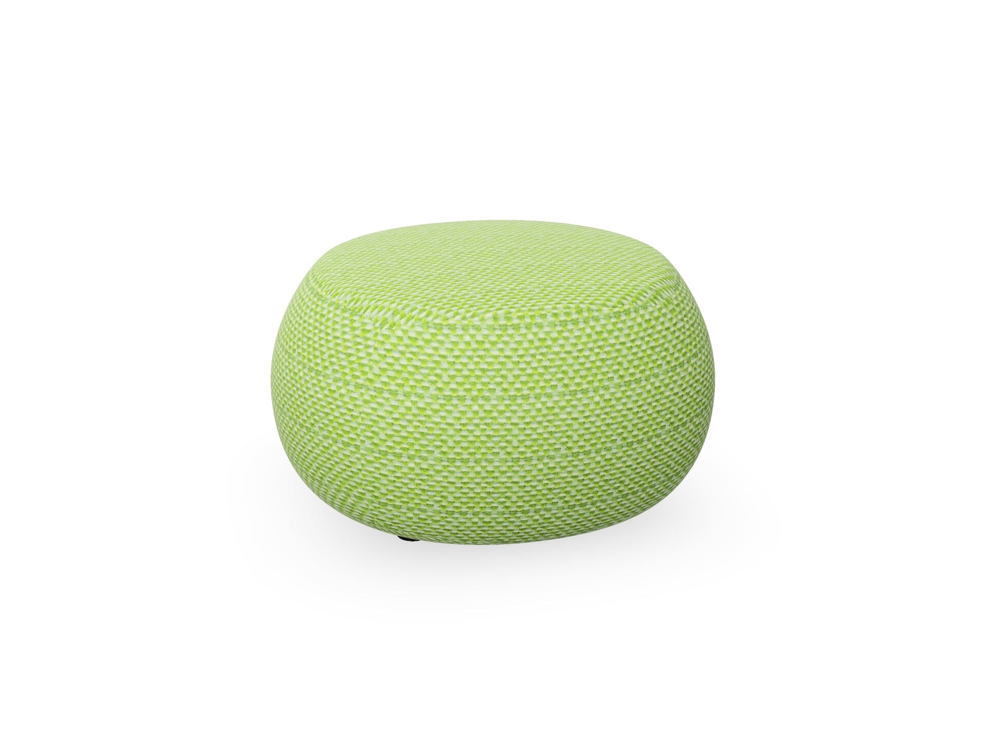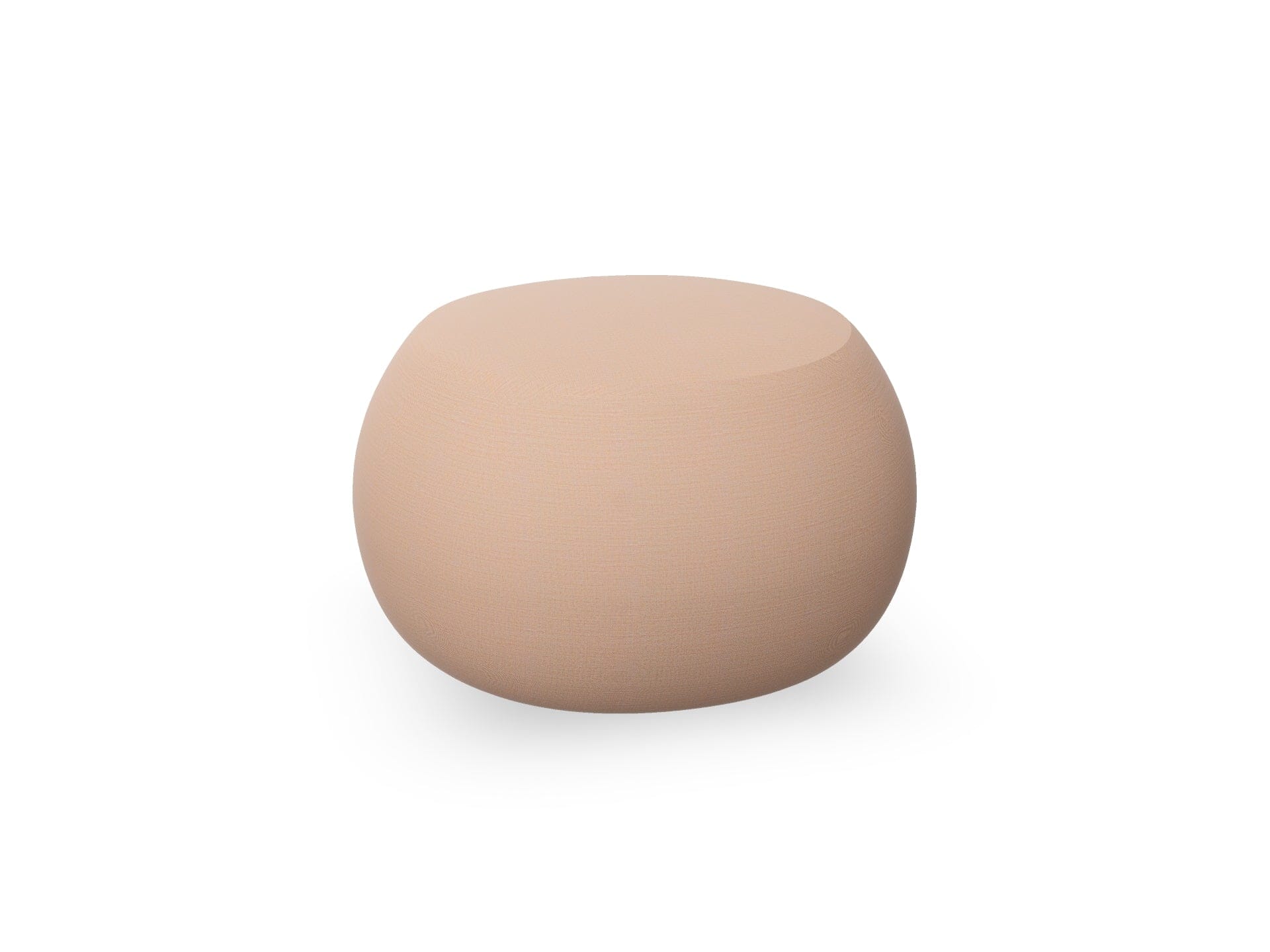 One small seat ottoman. Upholstery available in fabric, leather, faux leather or customer's material. A version suitable specifically for outdoor is also available, featuring a special flow-through internal foam and a polyester upholstery.
