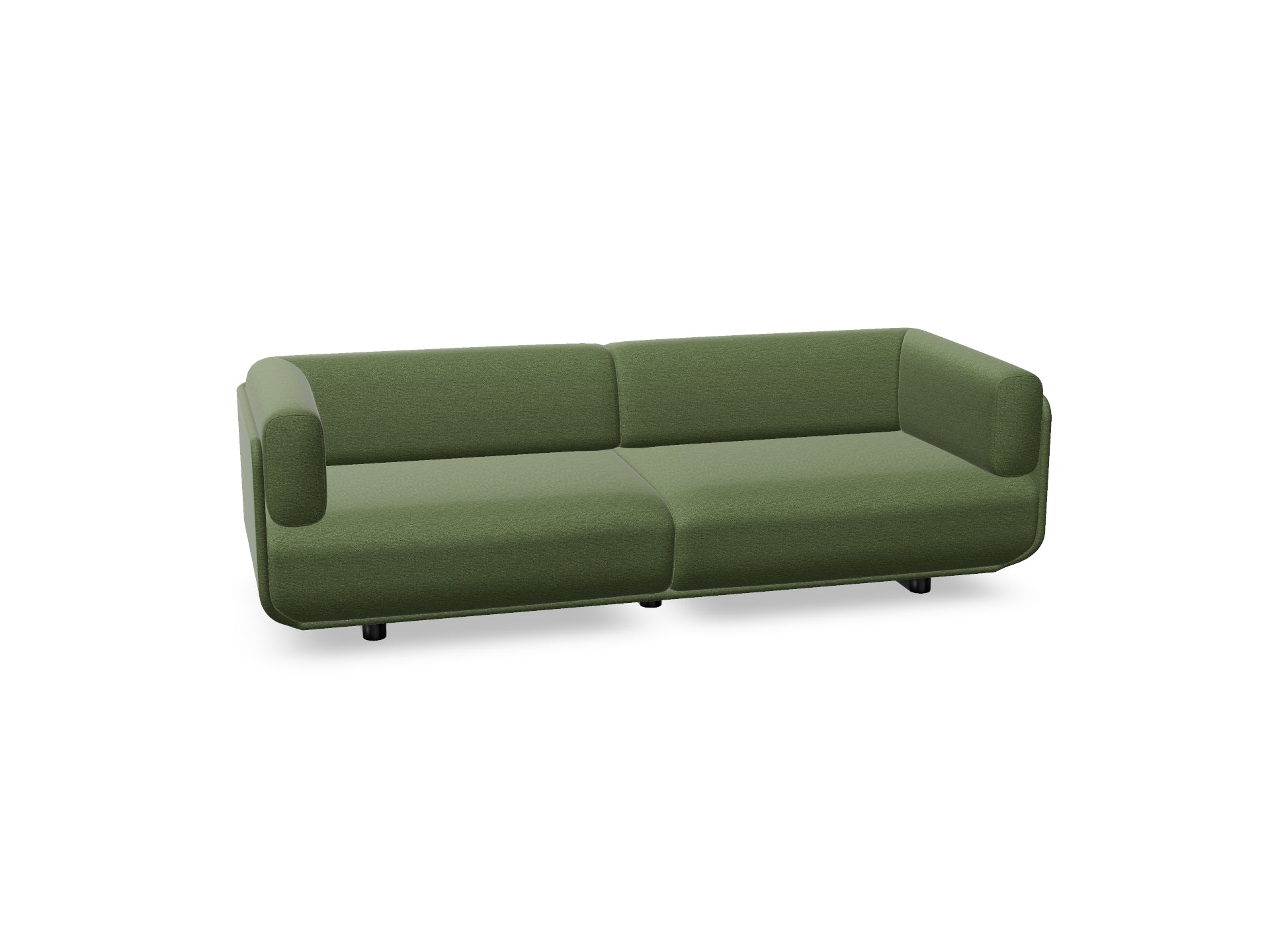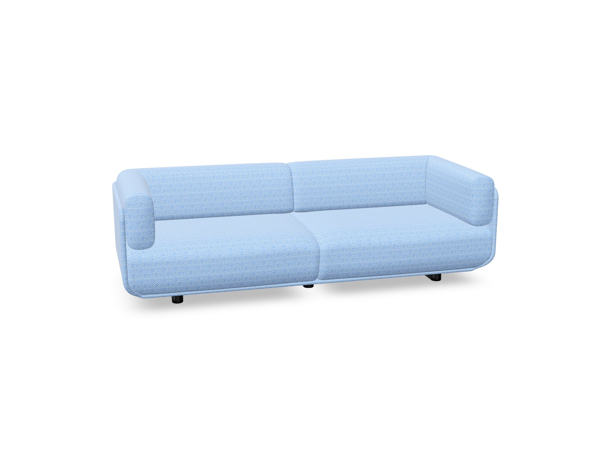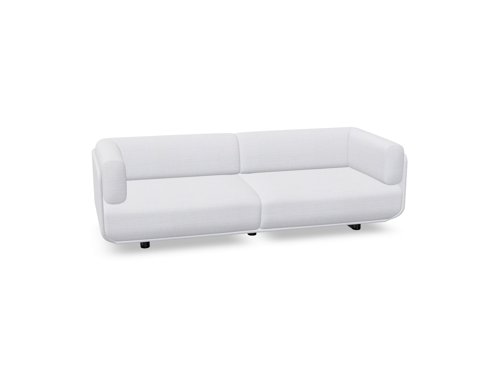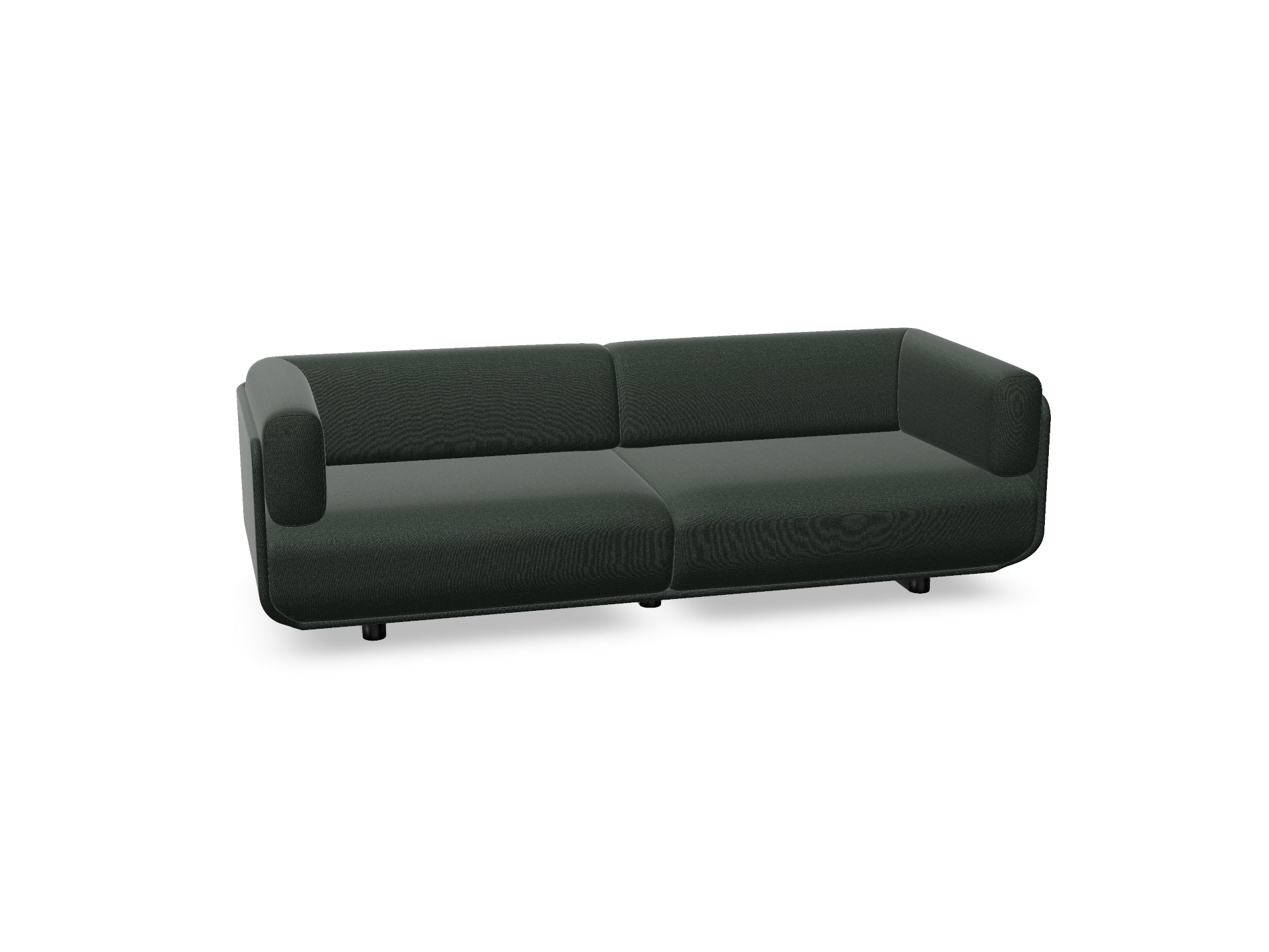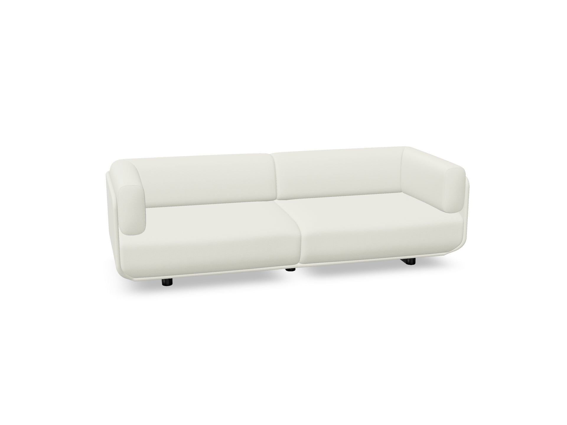 Shaal is a 3-seater sofa configuration with an outer structure composed of a wraparound panel made of covered plywood. The outer panel and the cushions are upholstered with the same material: fabric, leather, coated fabric or customer’s own material; or the outer panel and the cushions are upholstered with different materials in specially designed combinations. The cushions have removable covers.
