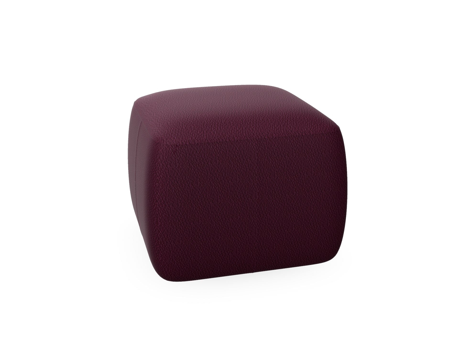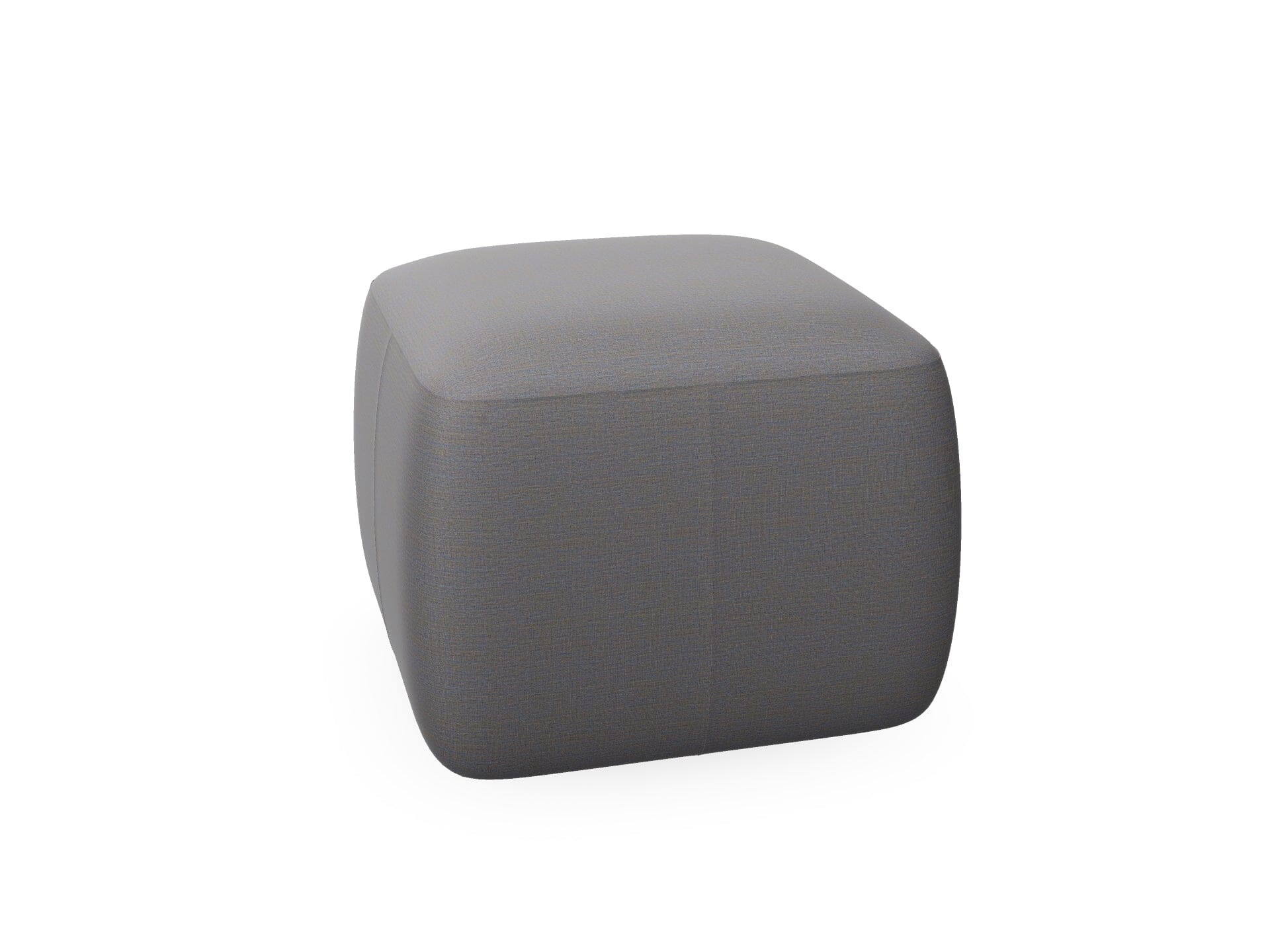 One-seat ottoman. Upholstery in fabric, leather, faux leather or customer's fabric or leather. Available in outdoor version thanks to a water-repellent inner lining in coated polyester. Fitted with glides. 21 3/4"x 21 3/4" surface and 17 3/4" height.