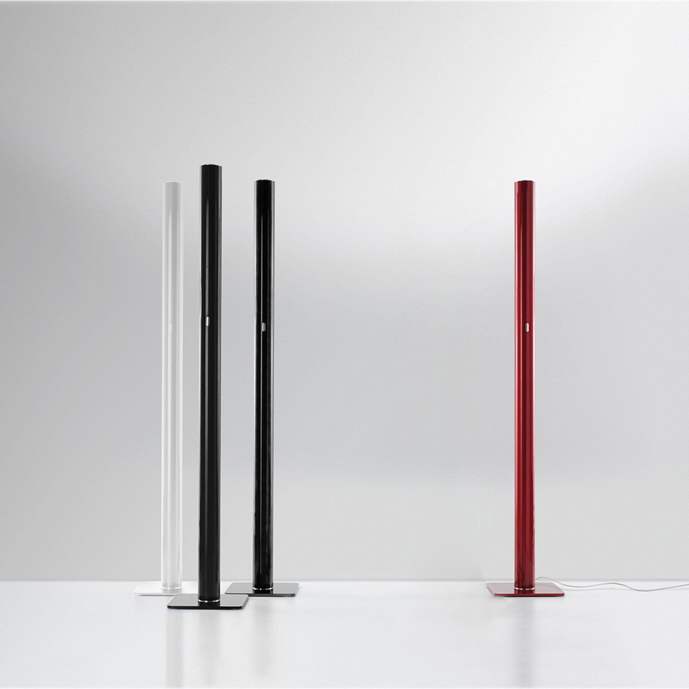 Ilio Floor Lamp by Artemide. With simple geometry, stripped of all formal digressions and reduced to its basics, Ilio draws attention through saturated color, available in 7 variations. A mono-material aluminum cylinder supports a 39W LED optical engine on the top, which produces high-efficiency diffused indirect light emissions. With a flow of more than 2700 lumen and an 80% yield, it ensures the general lighting of a room.