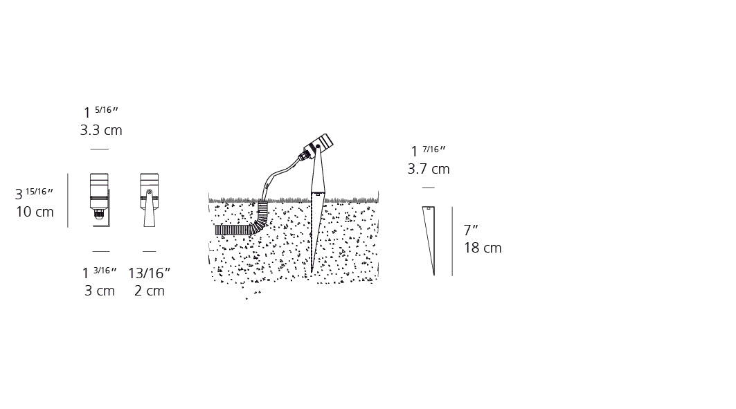 A discreet light fixture, Minispot’s direct light emission engulfs floors, spacious areas, and gardens with wonderful ambient lighting.