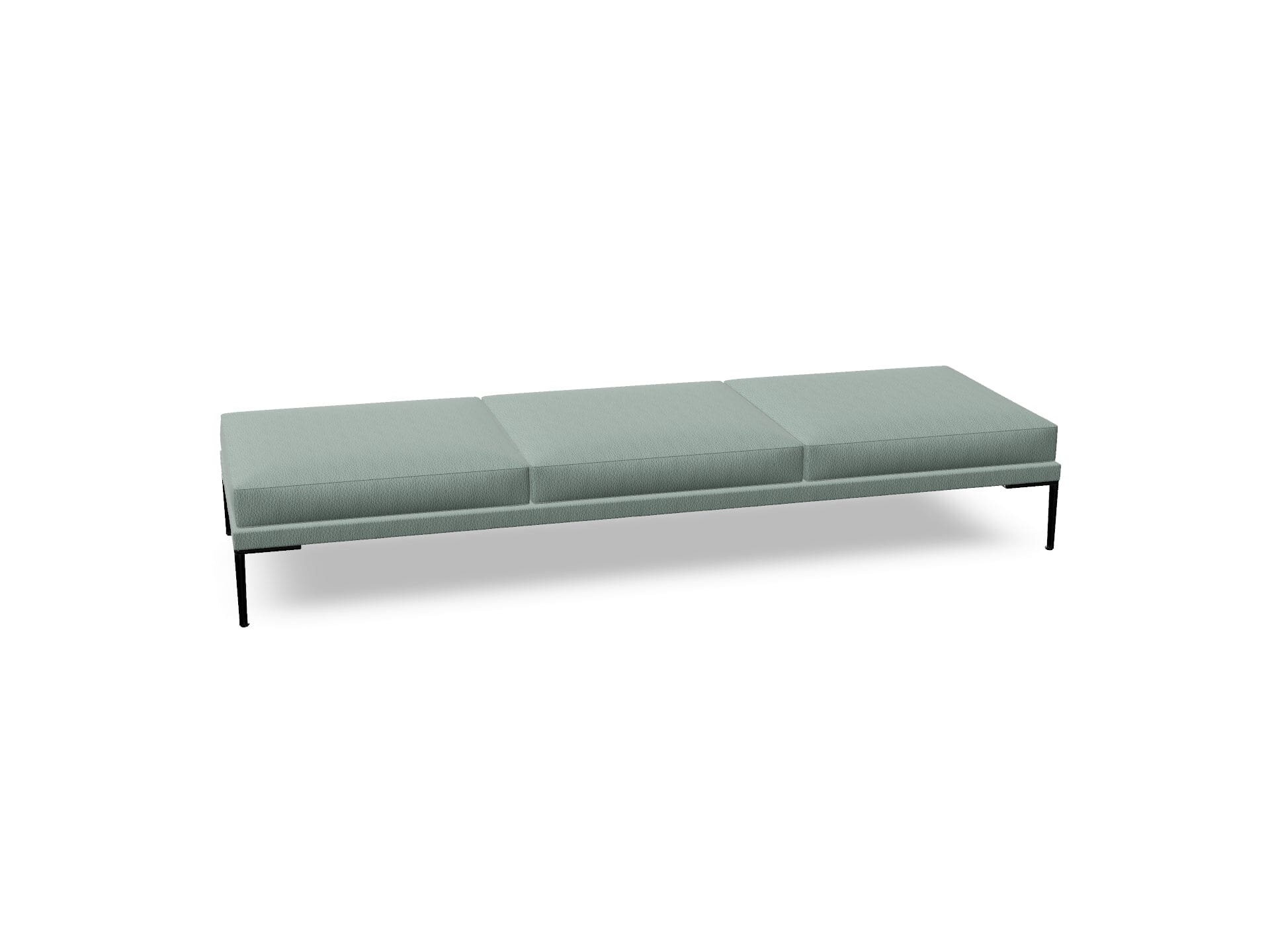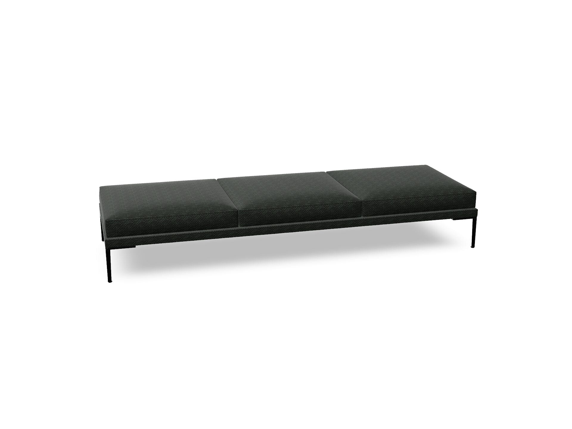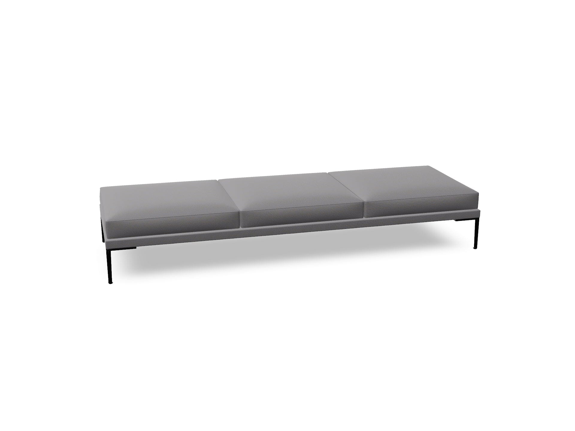 Three seat bench with one materiale one color upholstery available with fabric, leather or faux leather.