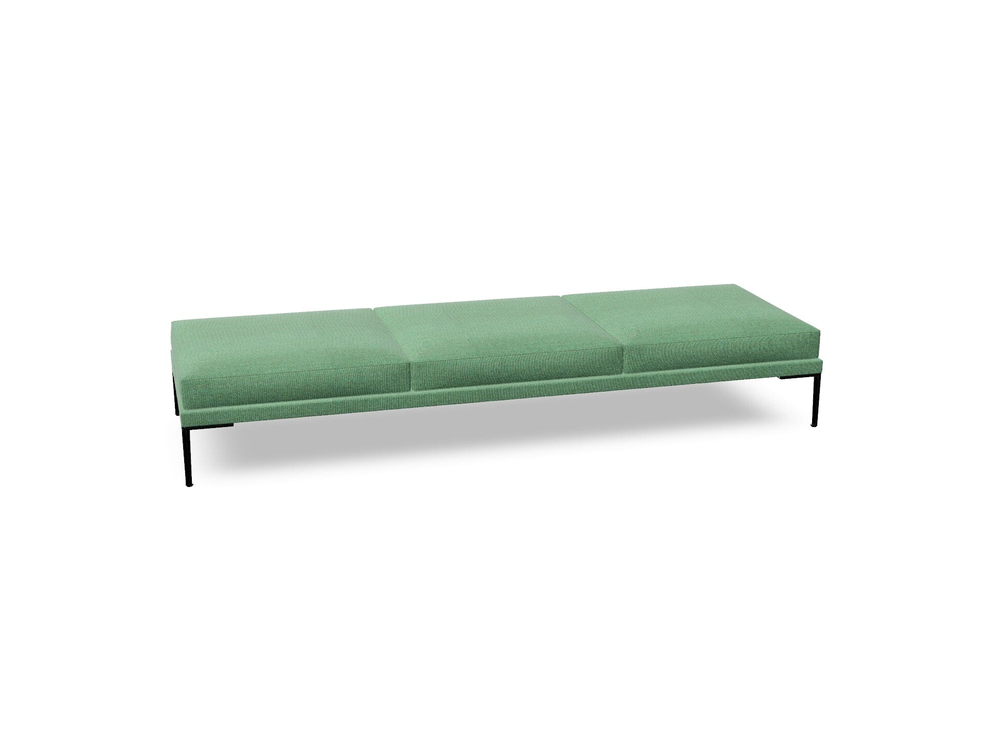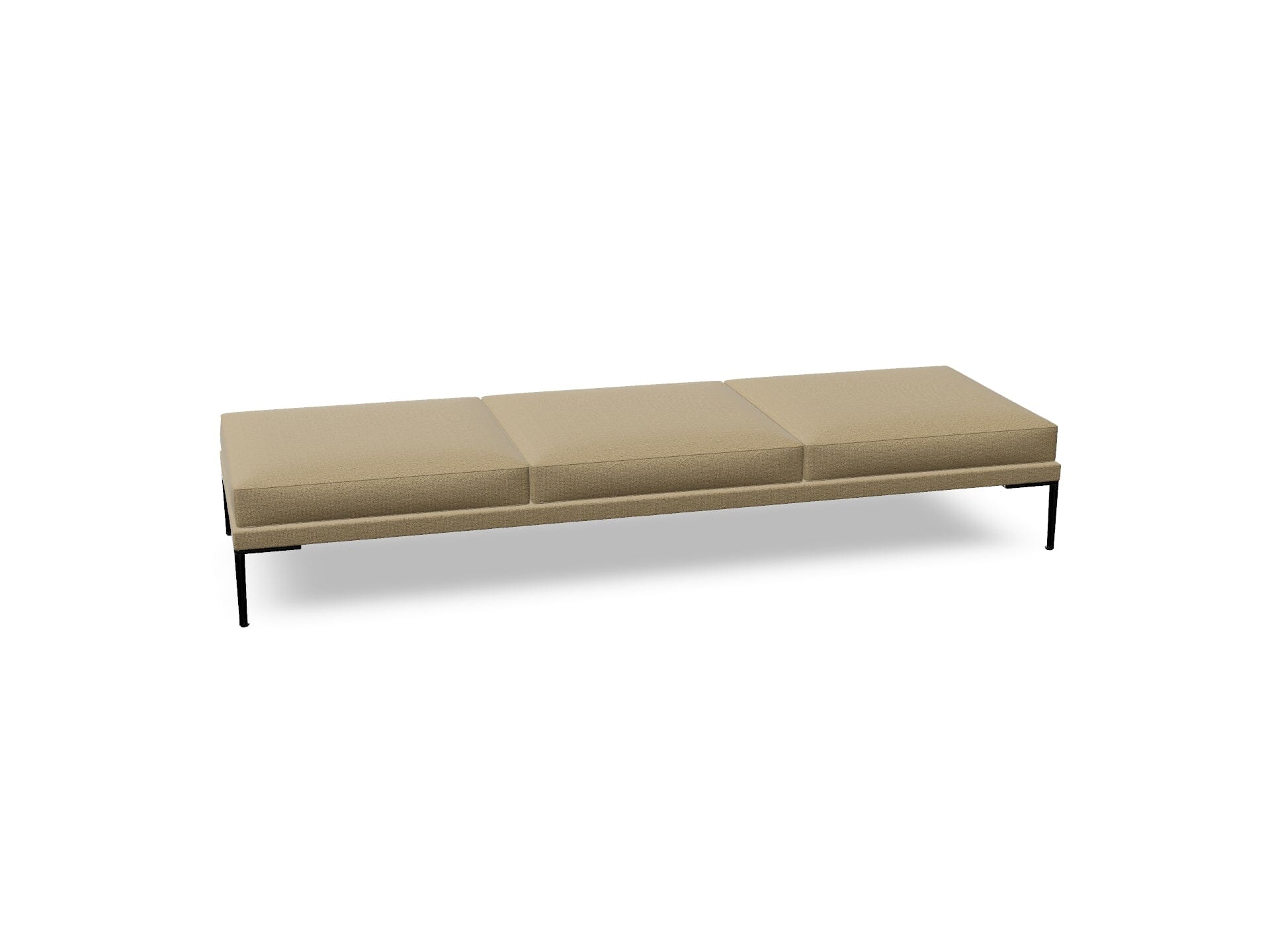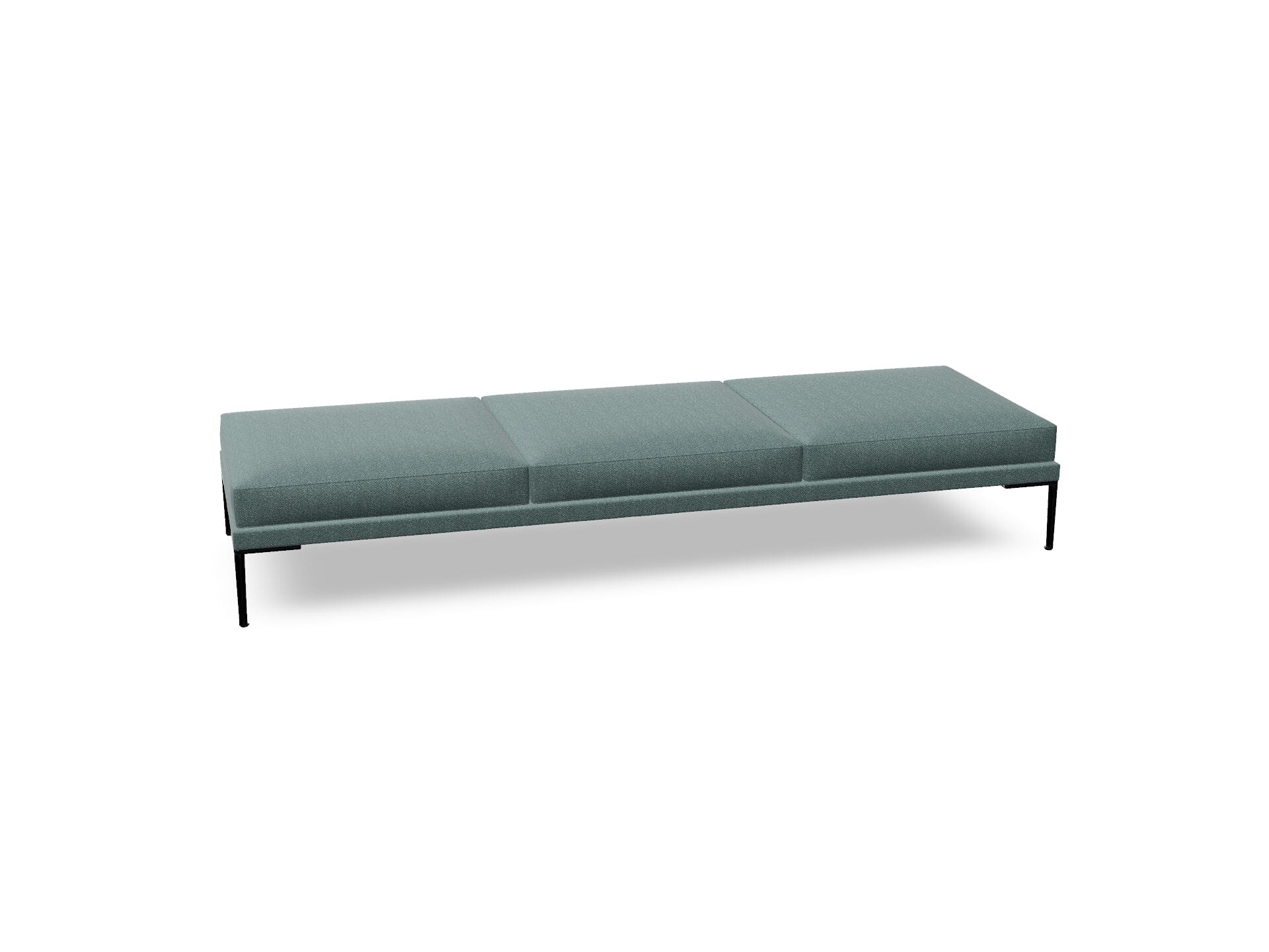 Three seat bench with one materiale one color upholstery available with fabric, leather or faux leather.