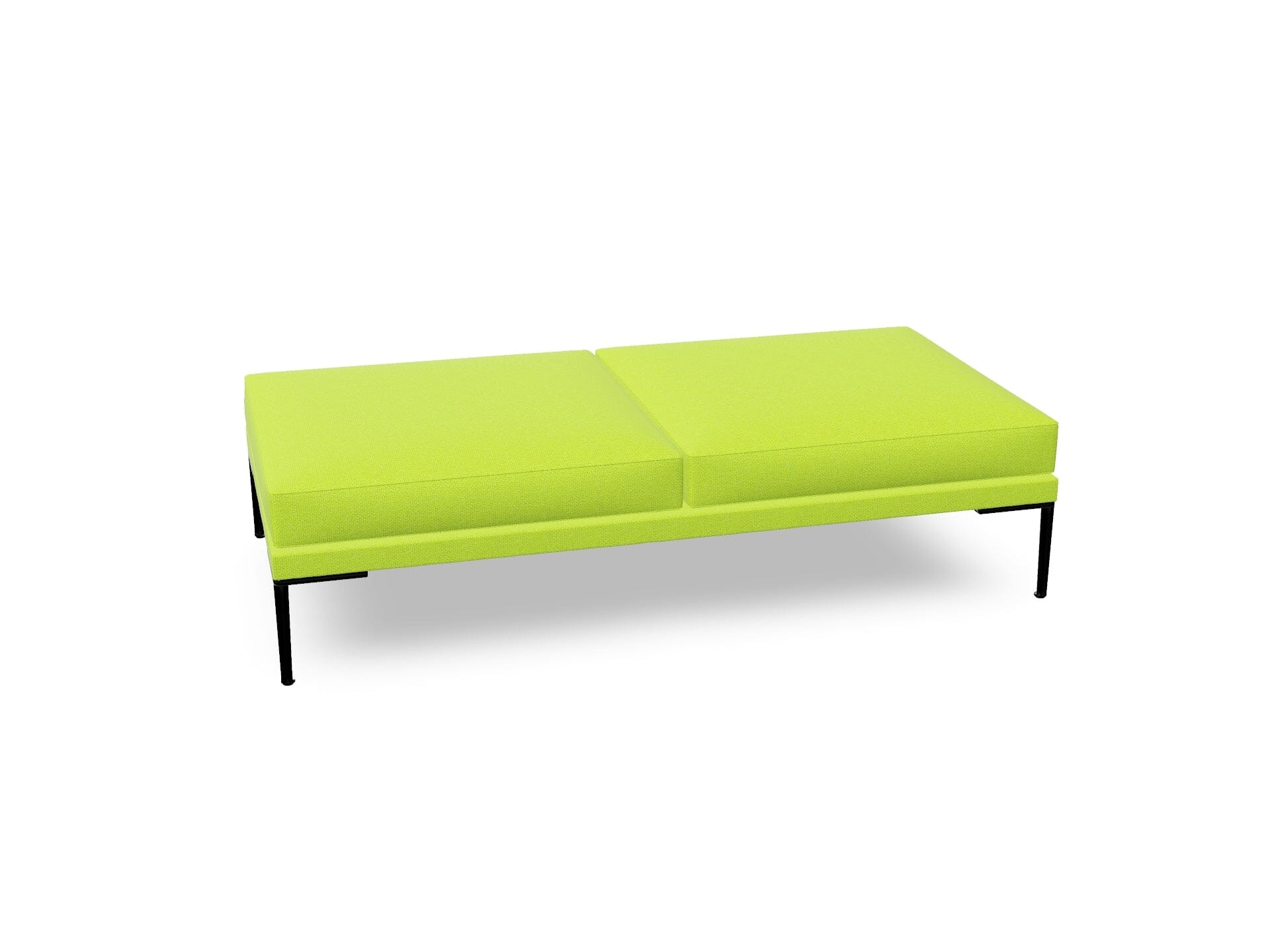 Two seat bench with one materiale one color upholstery available with fabric, leather or faux leather.