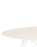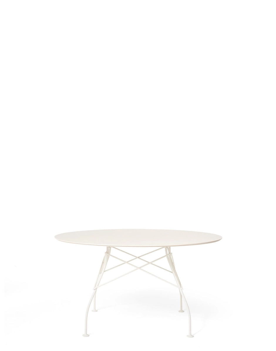 A family of tables ideal for the home and office. The light steel structure is made particular by the use of the cross element that joins the legs on each of the four sides, supporting the top. The collection comprises square, oval and round versions.