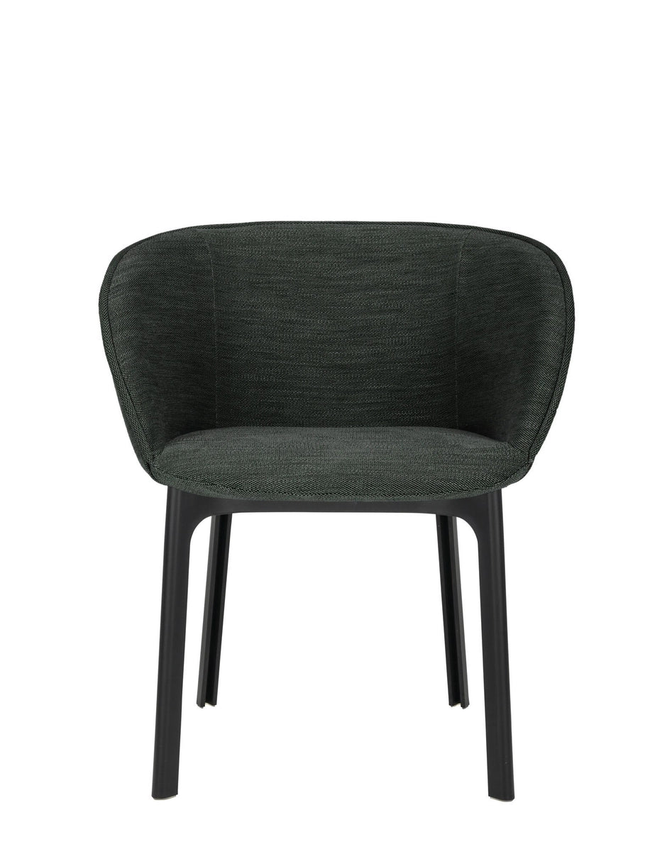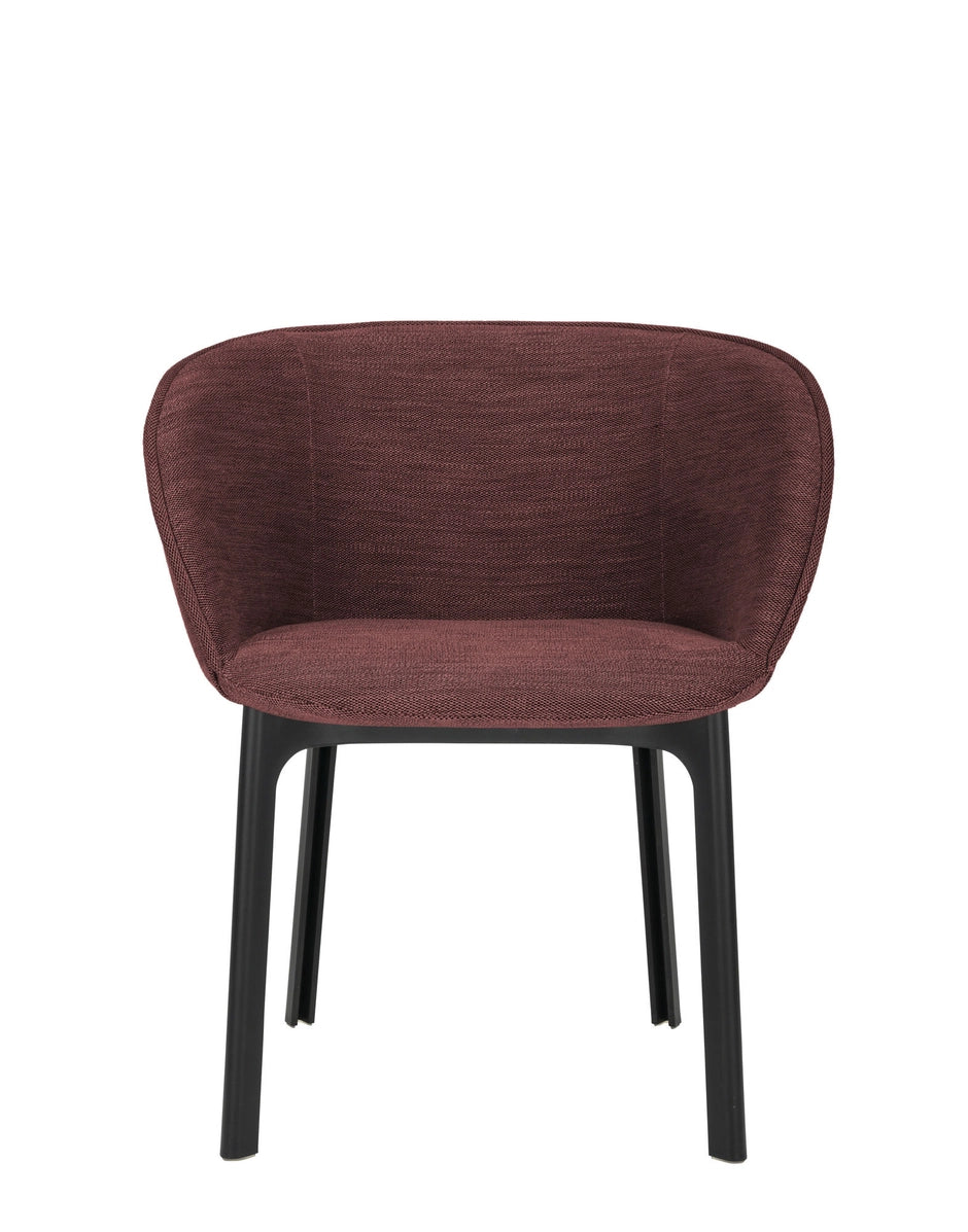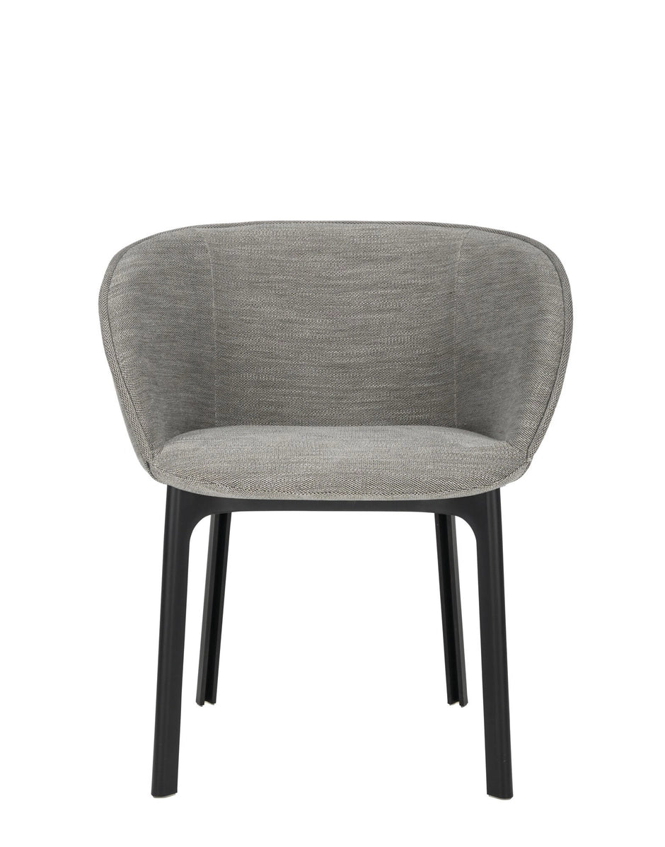 The CHARLA dining armchair boasts elegant, flowing lines and embraces you in an almost wrap-around seat. The chair has everything needed for the contract and consumer segments and is perfect for a quick rest in a hotel lobby or a TV dinner in the lounge at home. Charla combines elegance with sustainability thanks to legs made from recycled plastic. The frame comes in black, with upholstery in bouclé fabric or a special mélange fabric for the contract market