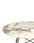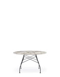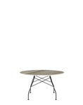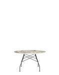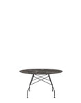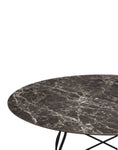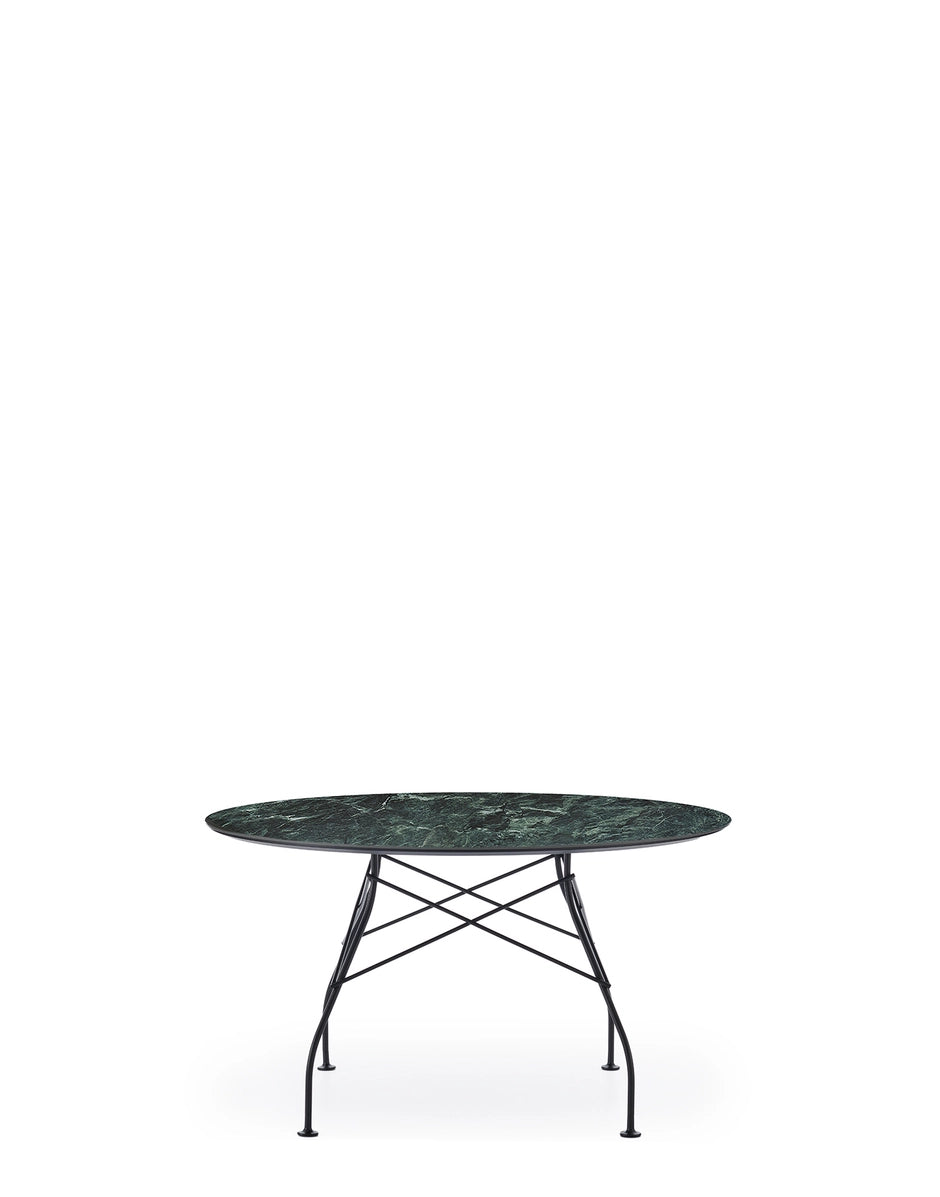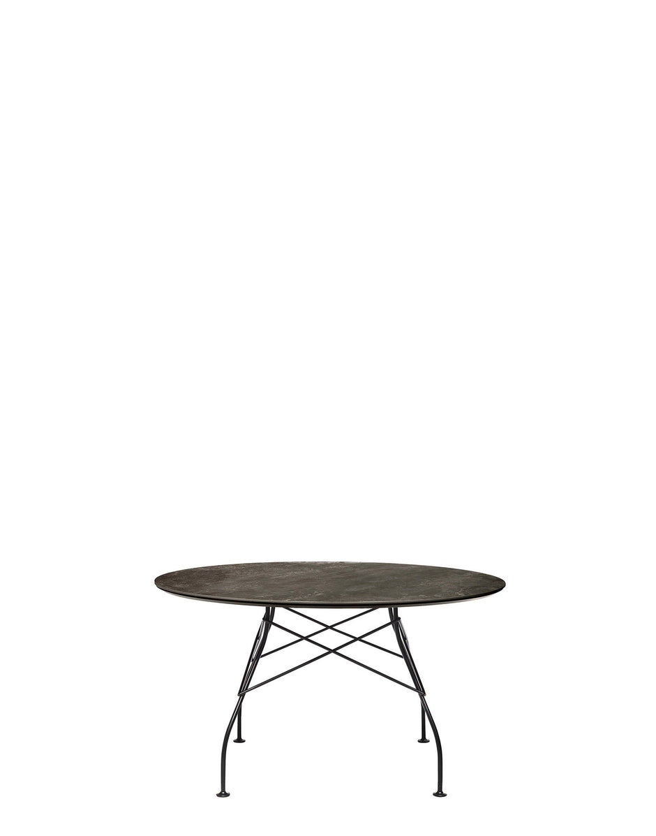 A family of tables ideal for the home and office. The light steel structure is made particular by the use of the cross element that joins the legs on each of the four sides, supporting the top. The collection comprises square, oval and round versions