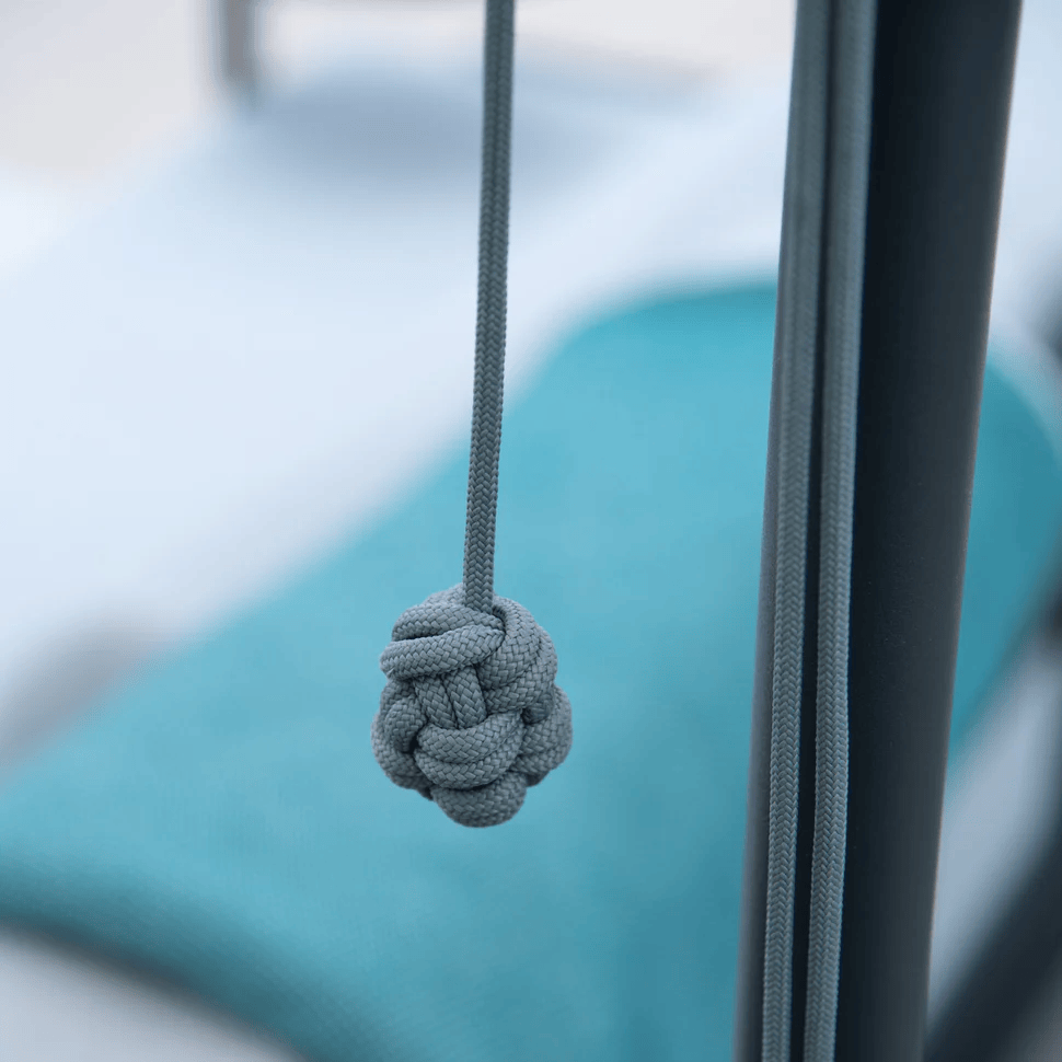 Loll Umbrella frames are constructed from durable, weather-resistant materials. All cast aluminum components (nuts, bolts, pulleys, cam cleats, etc.) are designed to withstand the most corrosive environments.