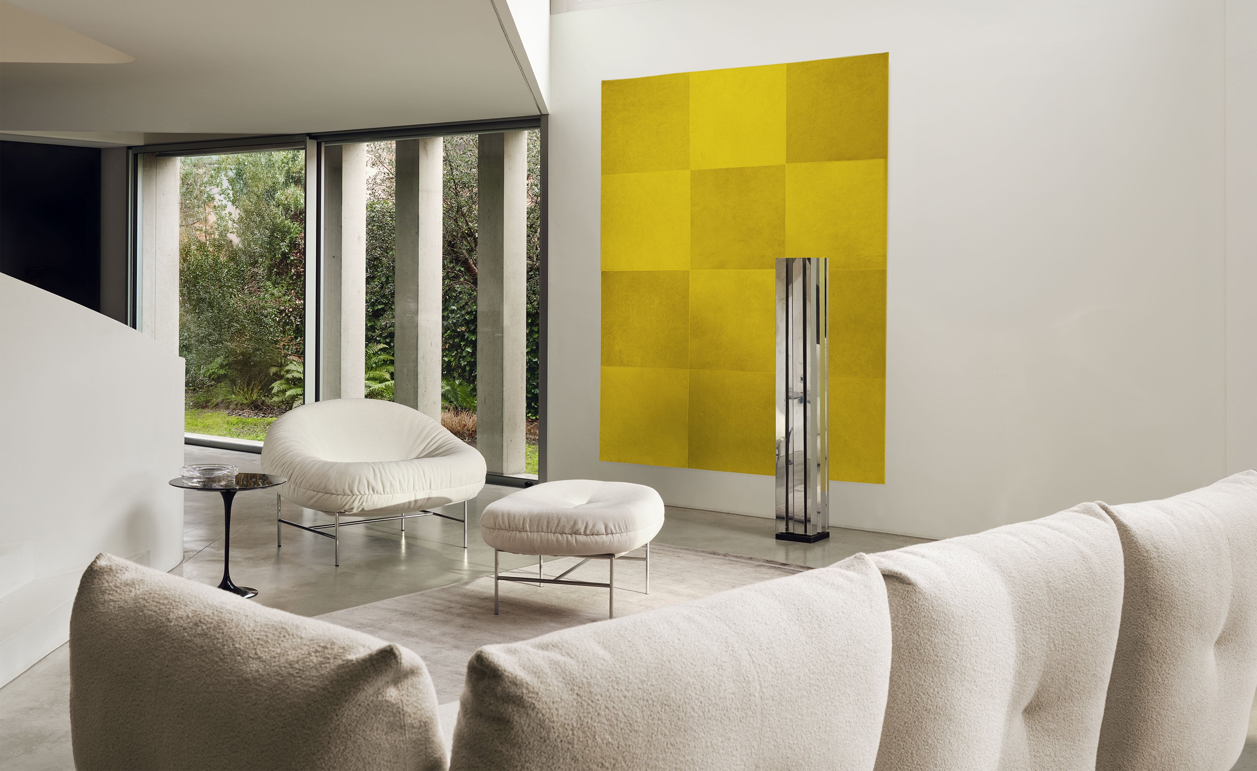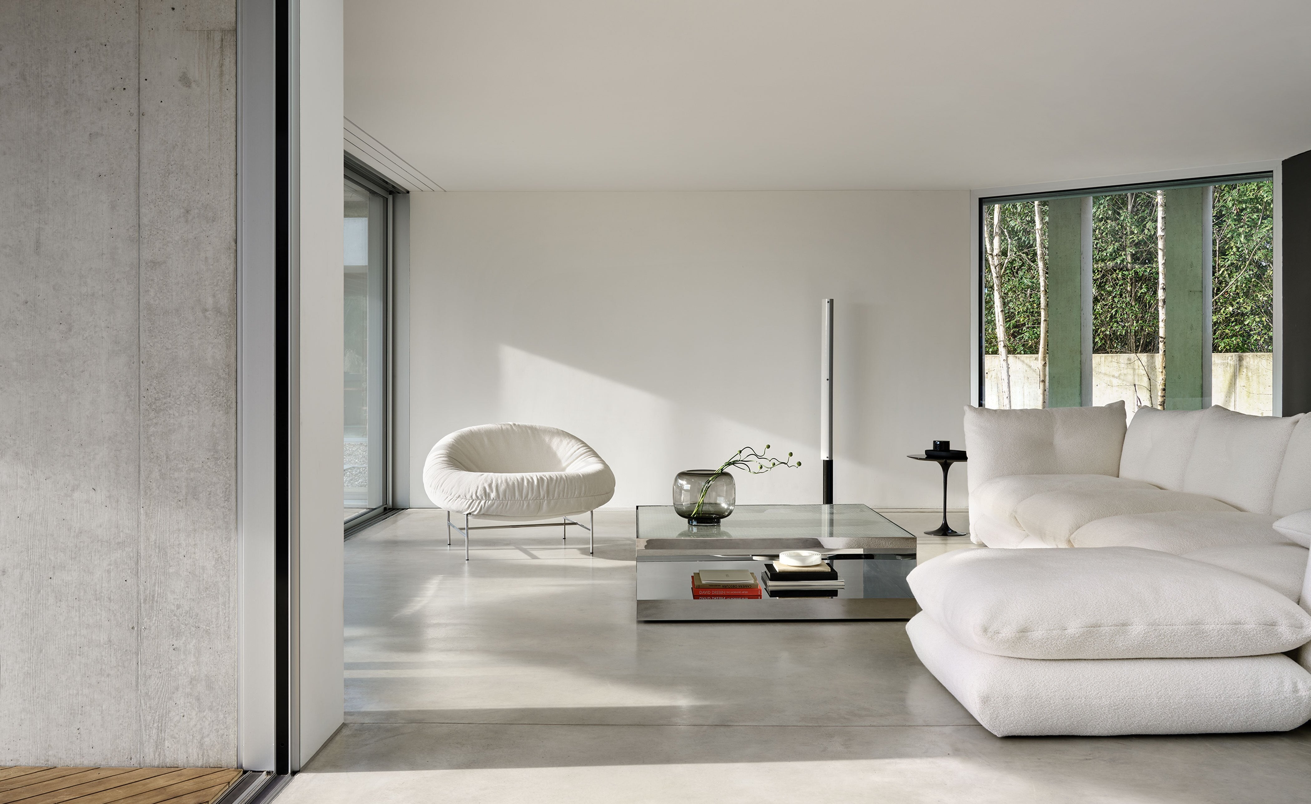 The Perron Bun Lounge Chair, with its cloud-like cushion supported by a sculptural frame, is an informal and dynamic solution for relaxation. Designer Willo Perron erases the distinctions between lounge chair, sofa, and bed with his Perron Bun Lounge Chair and Ottoman for Knoll. The roomy, plush seat welcomes a variety of curling up and tucking in positions, while the graceful curves of the sling base further the sitter's relaxed, comfortable repose. It's an inviting and laid-back nest.