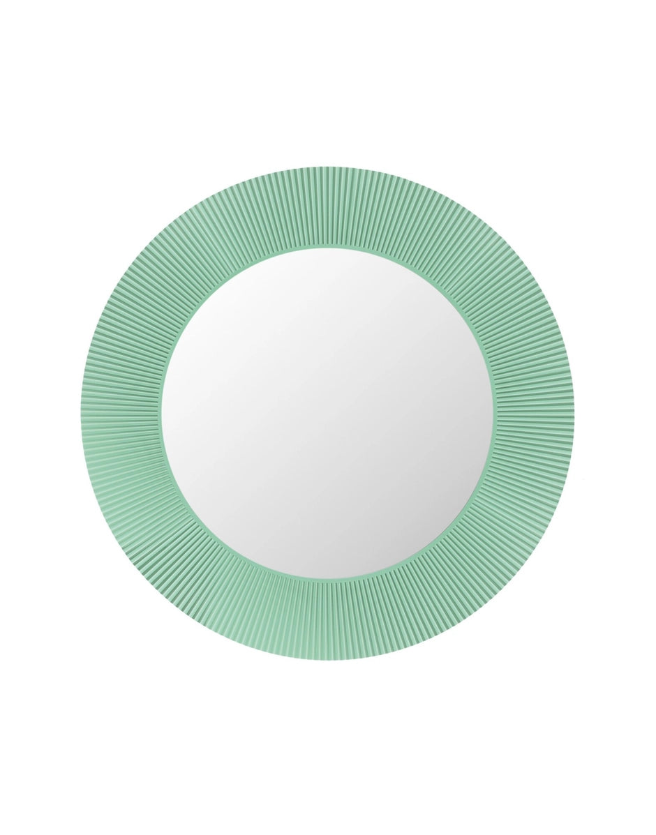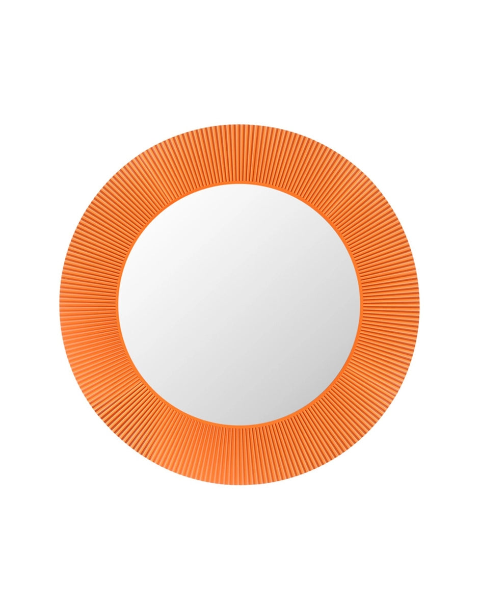 A round mirror in a frame with a pleated effect which creates a suffused play of refractions. The All Saints mirror is a well-defined graphic touch that evokes a heritage connotation and takes its inspiration from one of the most ironic pieces in the Kartell collection: the Bourgie lamp and its unmistakable Baroque style. The chance to switch from transparencies to the chrome-plated, metallic or gold leaf models makes this mirror an extremely versatile and adaptable design piece able to create contemporary and essential settings or eccentric and outside the box environments.