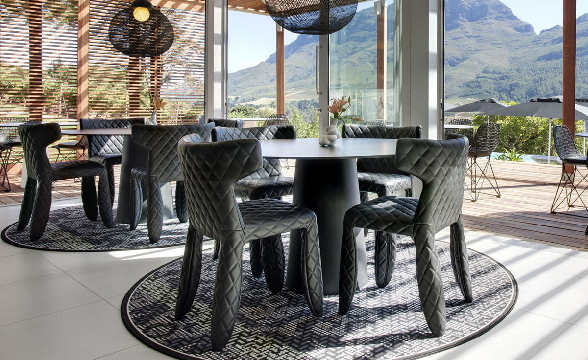 A soft, puffy and stylish chair as symbol of the eternal battle between opposite forces that take place in life and can be easily recognized inside ourselves, if we have the courage to open our eyes. Scary? Not at all! You forget all about the monster once you sit down and enjoy the chair’s comfort and softness. The signature version, the fearless leader of our Monster family, comes upholstered in Moooi Original Black Synthetic Leather with an embroidered face.