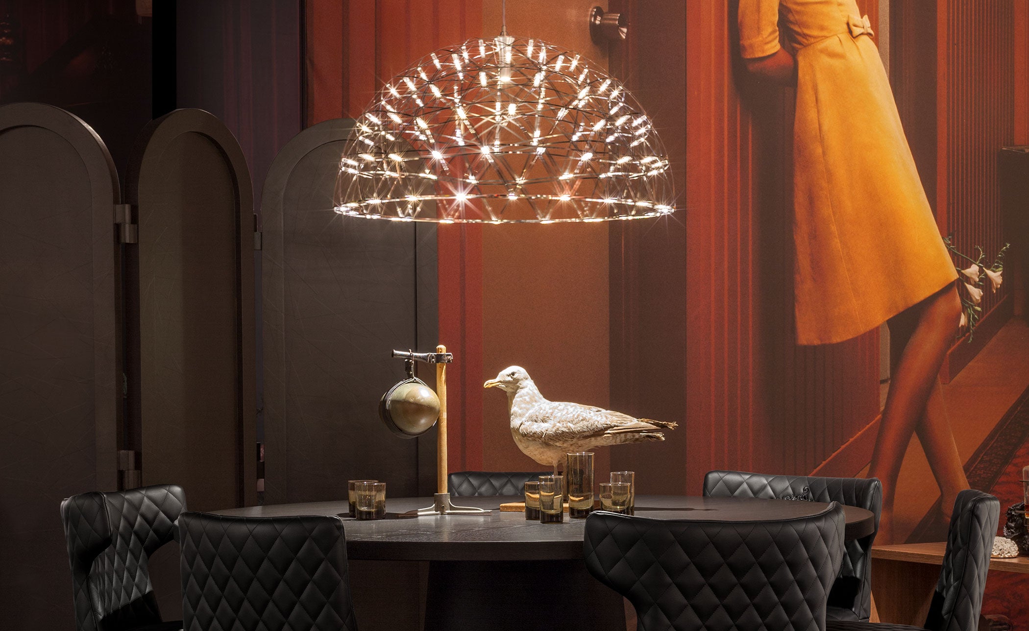 The Raimond Dome is made of the same mathematical ingredients as its spherical family members. Also punctuated by tiny LED lights but amplified with a powerful light source in its centre. Looking at the Raimond Dome feels like staring into the soft glow of a starry night, making it the perfect light for dining under the stars. Designer Raimond Puts passed away before he could see the final design. Together with Raimond’s wife, artist & designer Tis Ernst, Moooi completed the Raimond Dome.