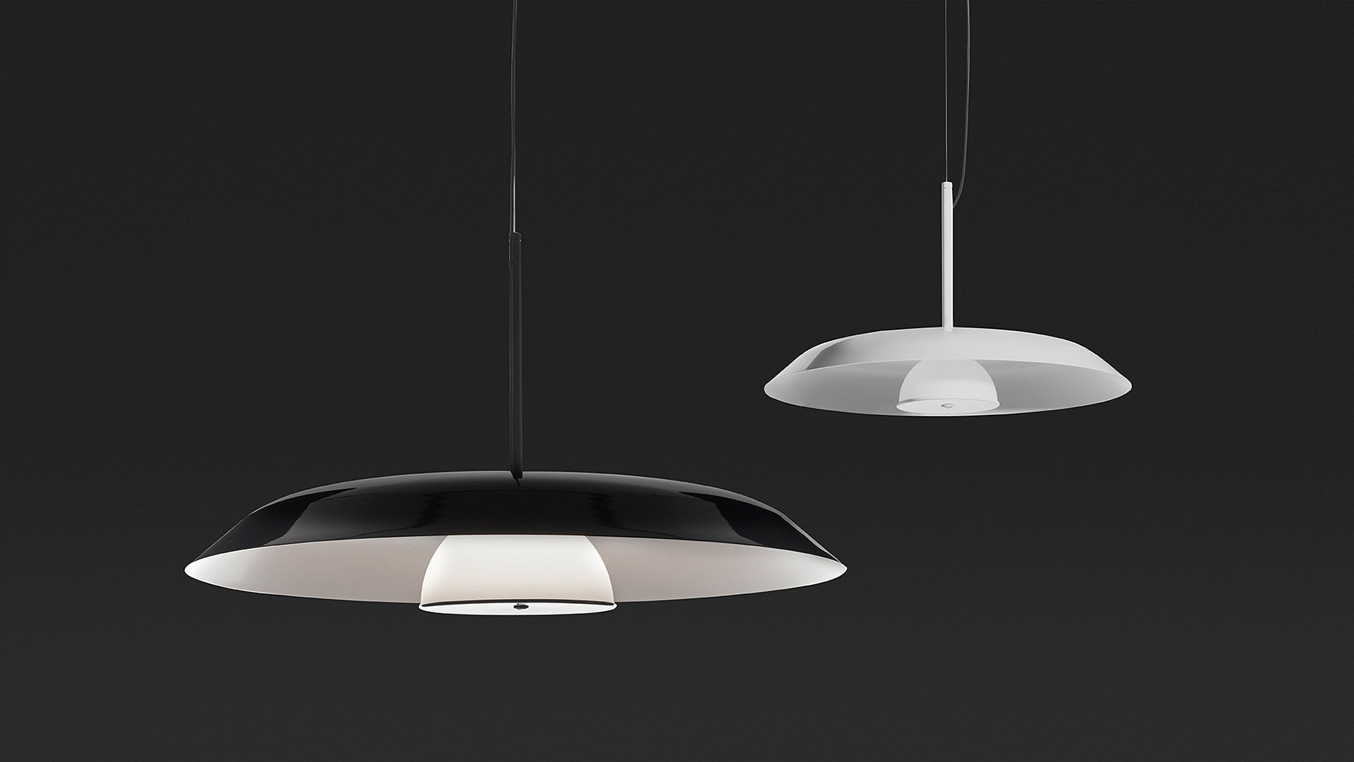 A partnership was established with Bellucci Mazzoni Progetti, two Sienese designers focused on interior and product design, who have designed a collection of suspended lamps for Oluce which have essential lines and are made entirely of metal.