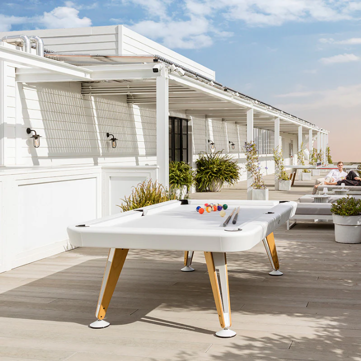 We recommend using a protective cover in case the pool table will be on the outside and unused for long periods. A must-have for the outdoor pool table version.