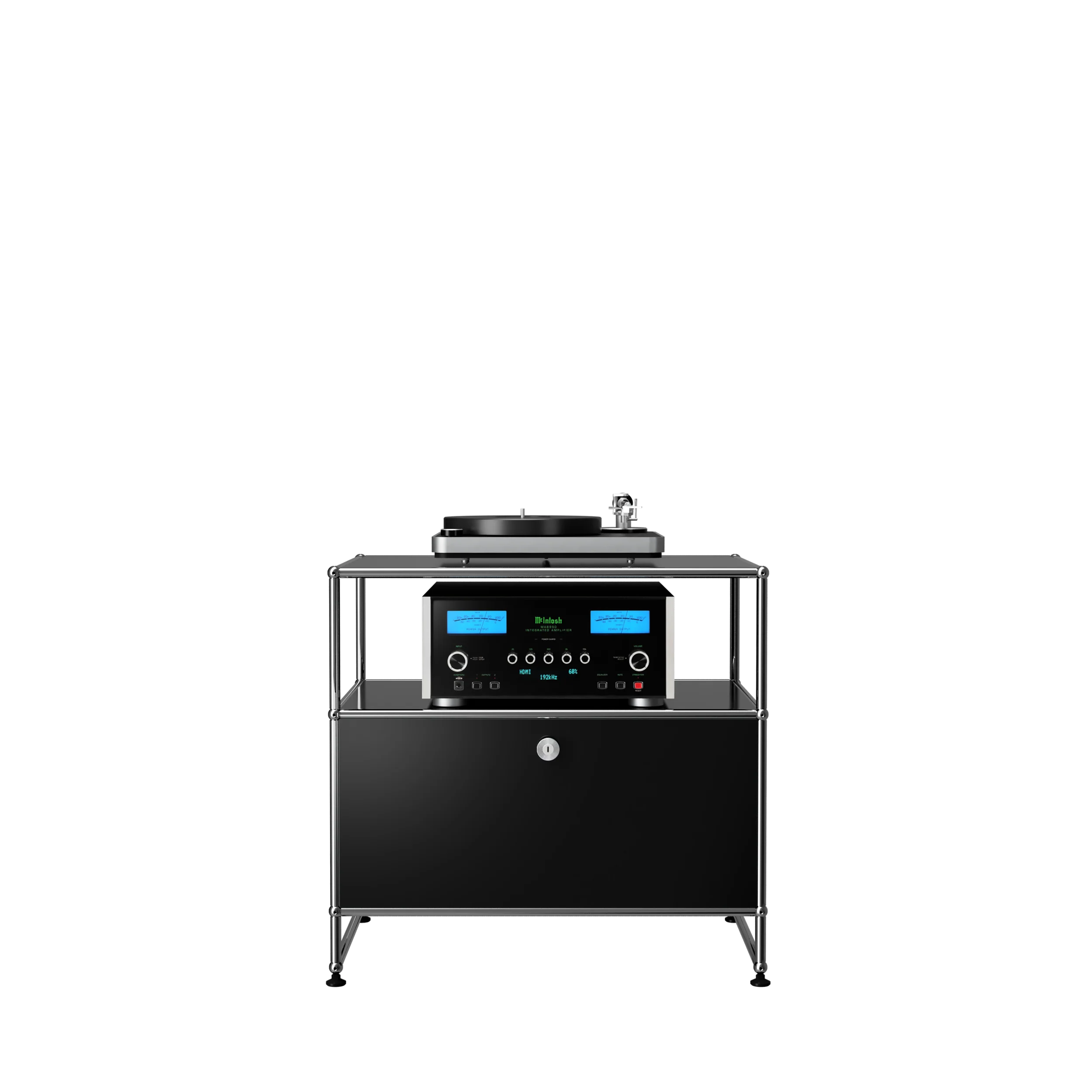 The USM x Symbol Record Stand is an incredibly efficient way to integrate an all-in-one vinyl listening station into your home. The expandable system can accommodate both casual listeners and hardcore audiophile collections. The 31” Record Stand offers an all-in-one solution to store up to 145 records, audio components, and a turntable. Soft-close drop-down door.