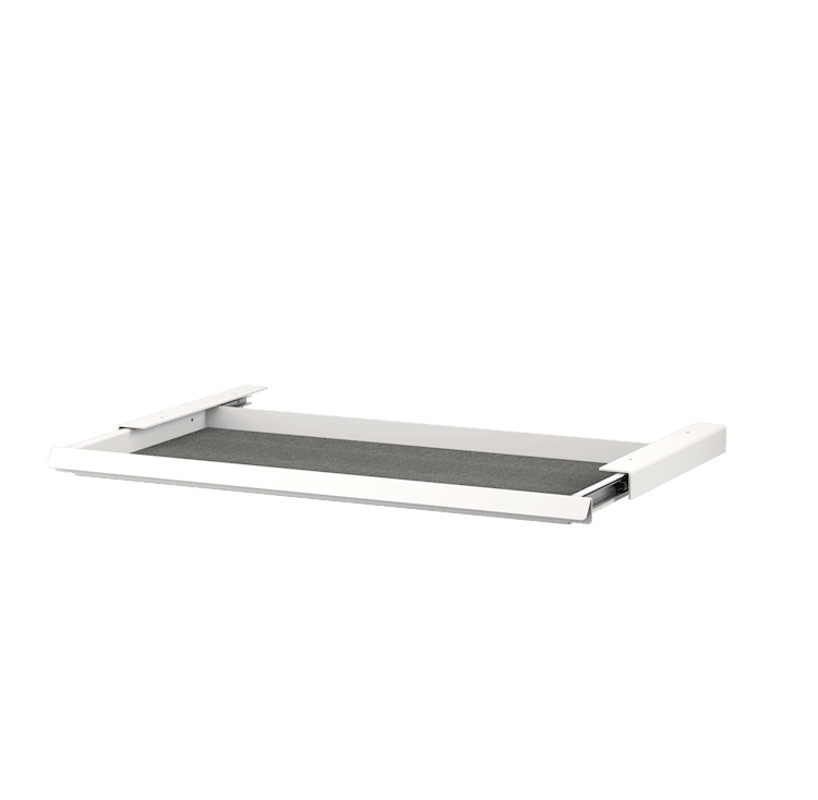 The Desk Drawer from the String® System is a discreet and functional solution that frees up workspace. The drawer slides smoothly thanks to the drawer slides. It fits both the desks from Works and the Work Desk from the String® System. Inside the drawer, there is a protective felt sheet, and the inner dimensions are w56 x d28 x h2.6 cm.