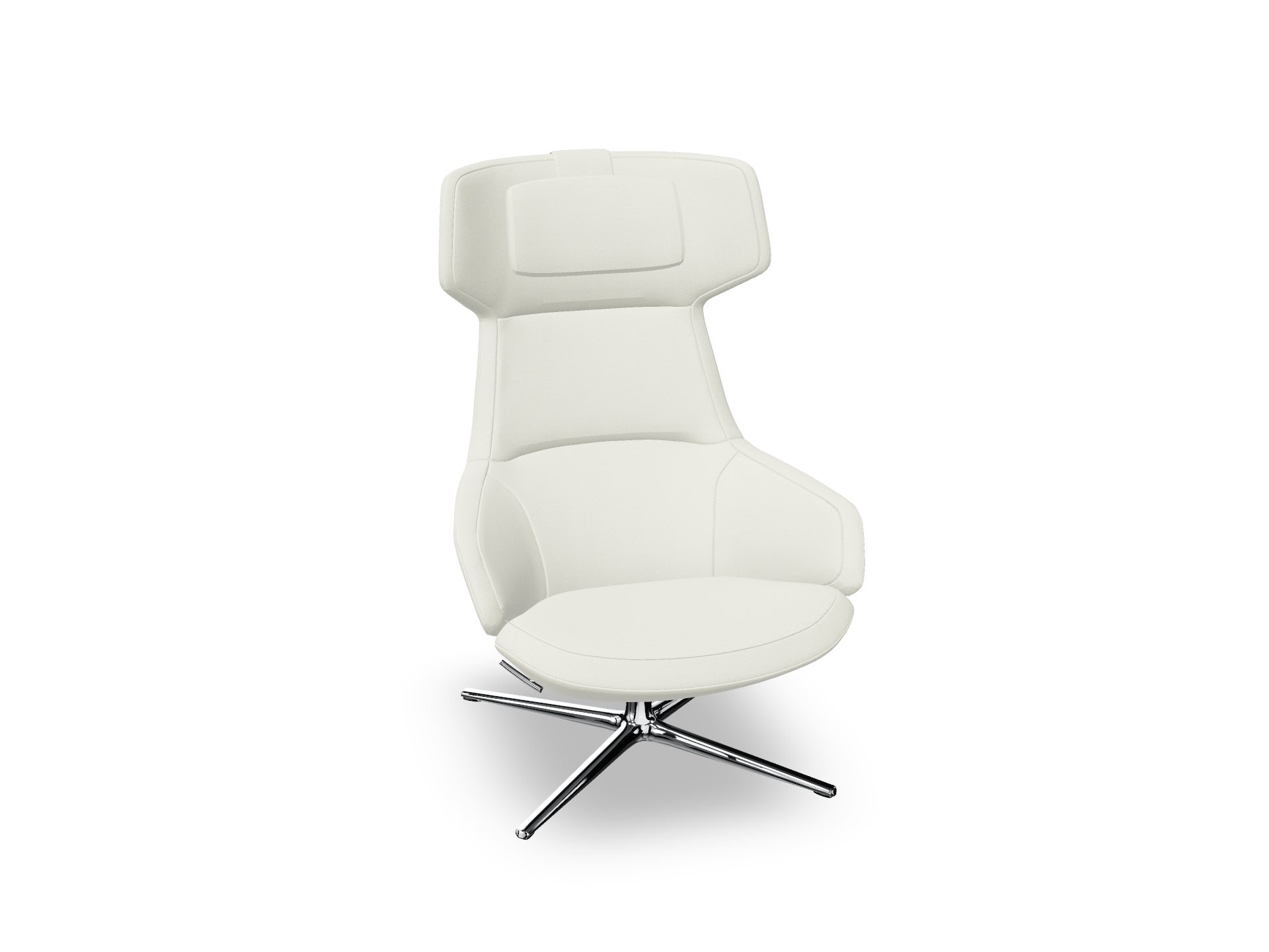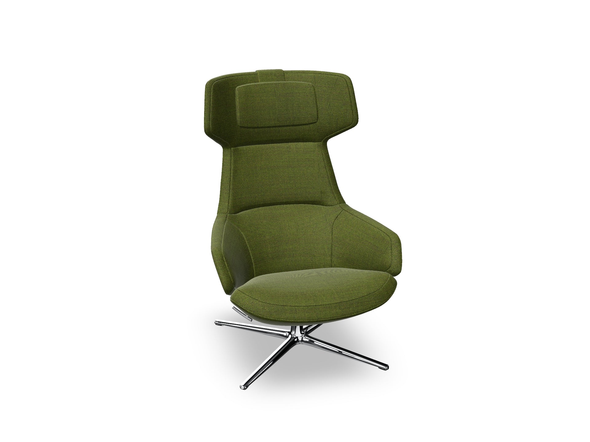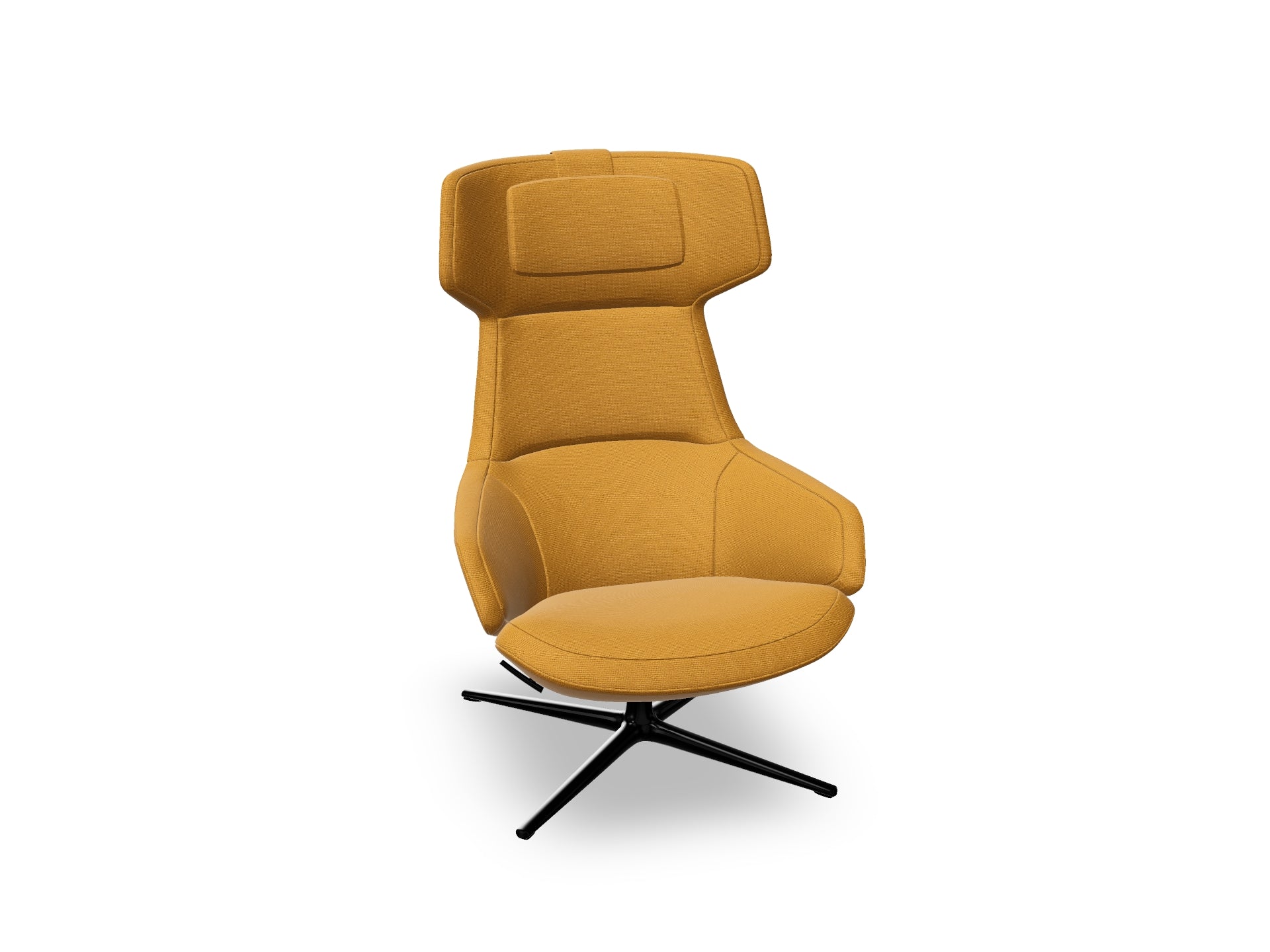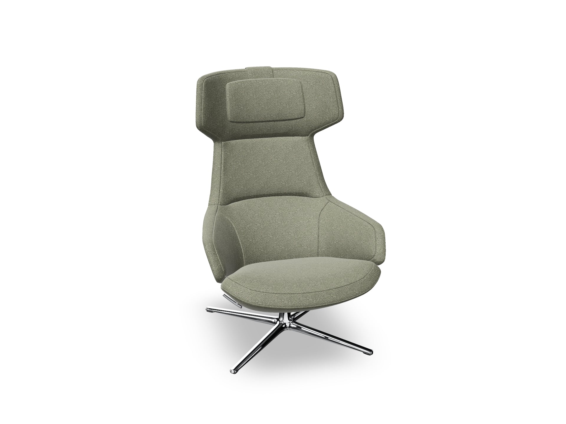 Aston Club was created with ergonomic comfort and sustainability at its core. The internal components of this superior lounge chair are made from recycled plastic from industrial waste and without the use of glue. With its clean, pure lines and softly supportive structure, each component piece has been carefully crafted to provide both visual and physical comfort – be it in office, hospitality, or residential contexts. A matching footrest continues the aesthetic and creates a moment of full repose and relaxation. Each Aston Club chair and footrest can be customized with myriad upholstery options—from classic fibers to contemporary patterns—and all pieces are recyclable. The base is finished in polished or painted aluminum. The result is a timeless statement piece that supports both the body and the planet.