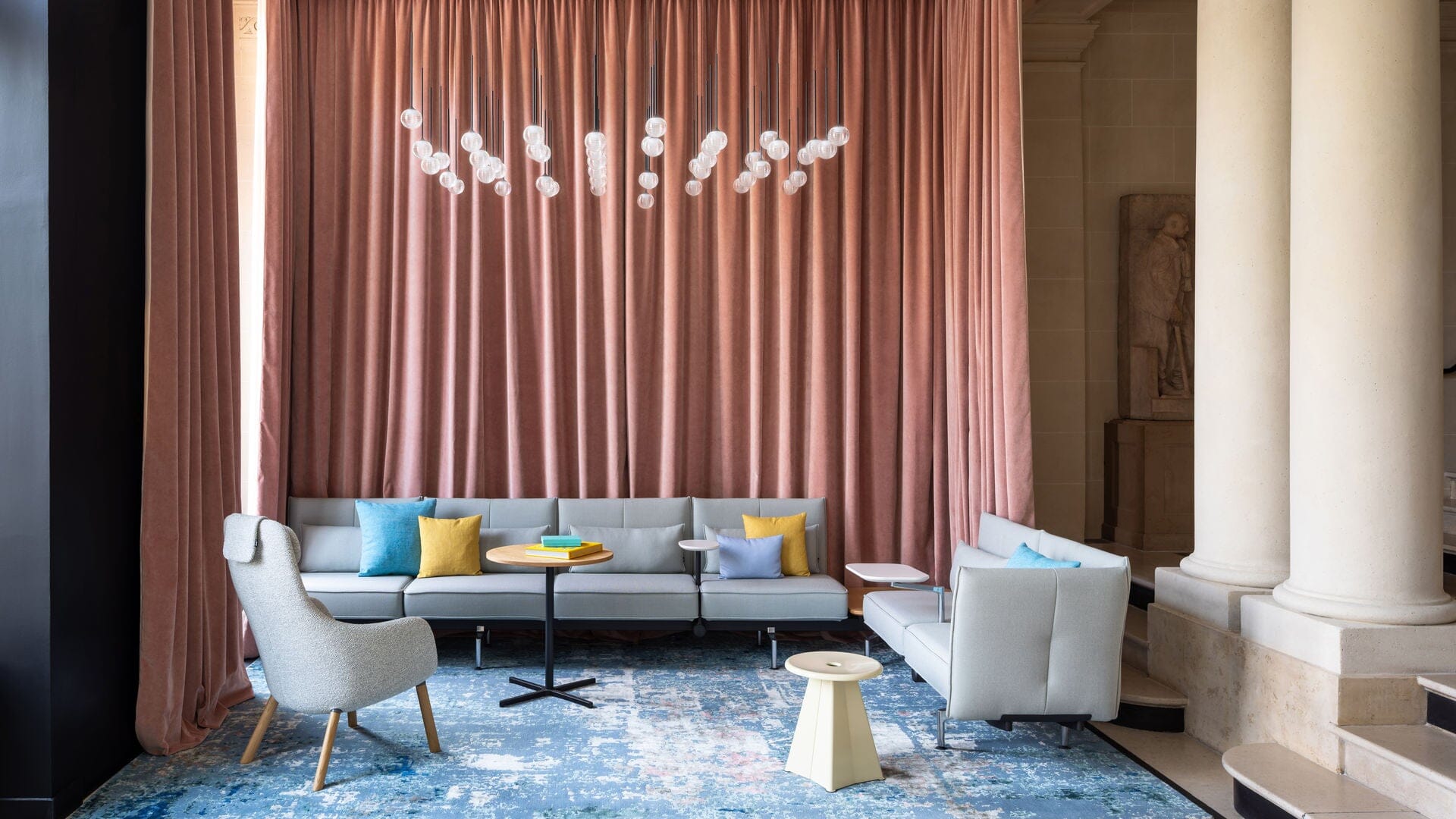The compact HAL Lounge Chair (2021) is Jasper Morrison's reinterpretation of the softly upholstered four-legged armchair with a high backrest.