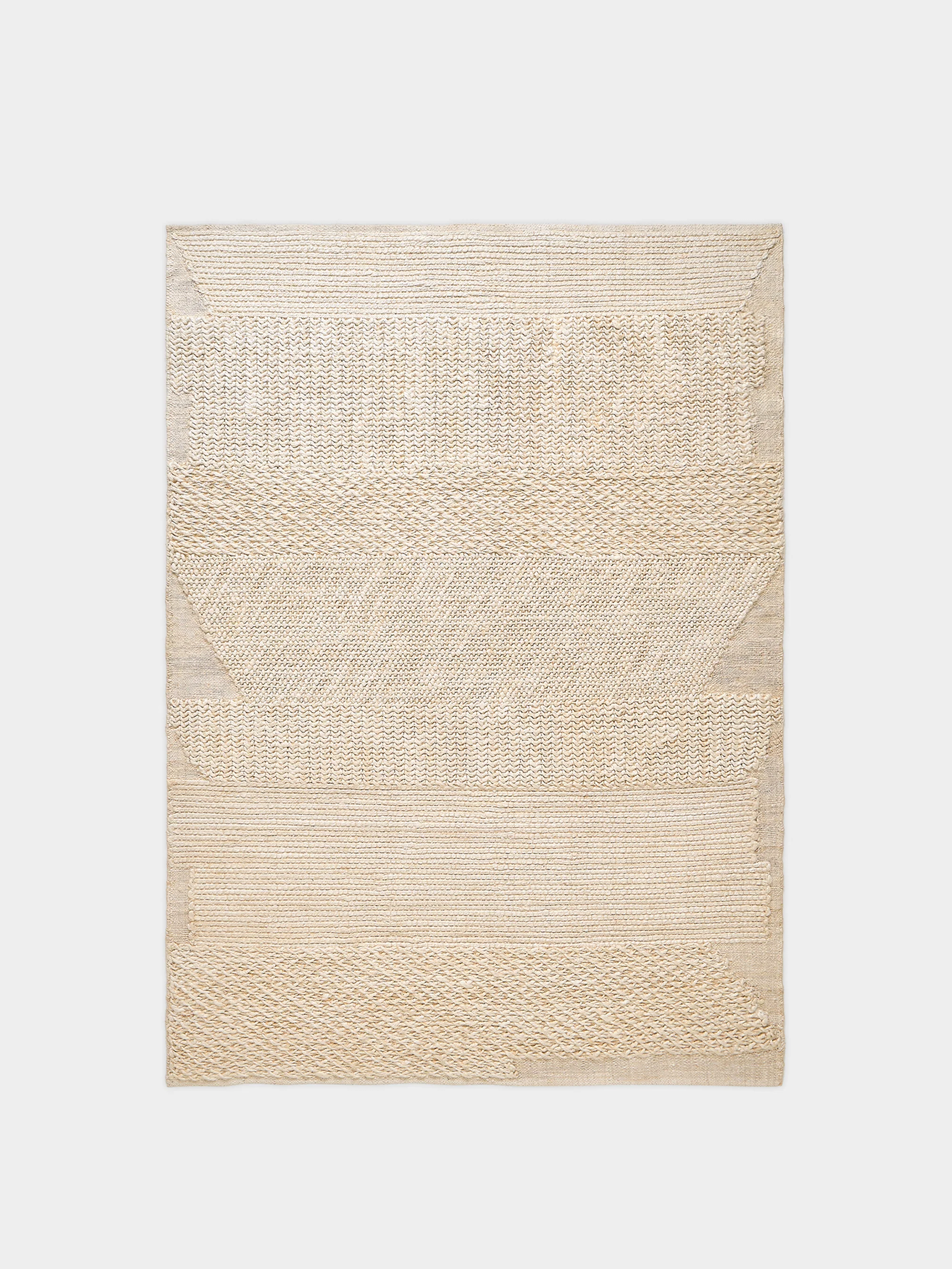 The KNOTTY Rug is inspired by Tom Dixon’s love for stacking blocks of shapes, which is reflected in its bold yet subtle design. Handcrafted from irregularly spun bleached jute yarn, the rug features a range of weave patterns that create a rich, tactile surface. The interplay of these patterns adds depth and texture, bringing an organic and earthy feel to any space. Available in two sizes (170x240 cm and 200x300 cm), its natural tones effortlessly connect with nature, adding warmth and character to a space.