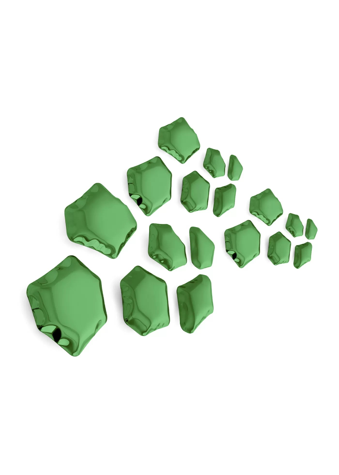 KAMYKI is a series of decorative wall hangers in unique but repeatable shapes. This randomly dispersed constellation of glossy beads creates a neat impression. KAMYKI are made of stainless steel polished to a high gloss, which gives them an adorable look when mounted together on the wall to create a special pattern or design. They are often used to decorate reception entrances, halls, or bare and minimalistically structured walls inside or outside the building. KAMYKI have different diameters from 7 to 20 cm, which can be easily adjusted according to the customer’s needs.
