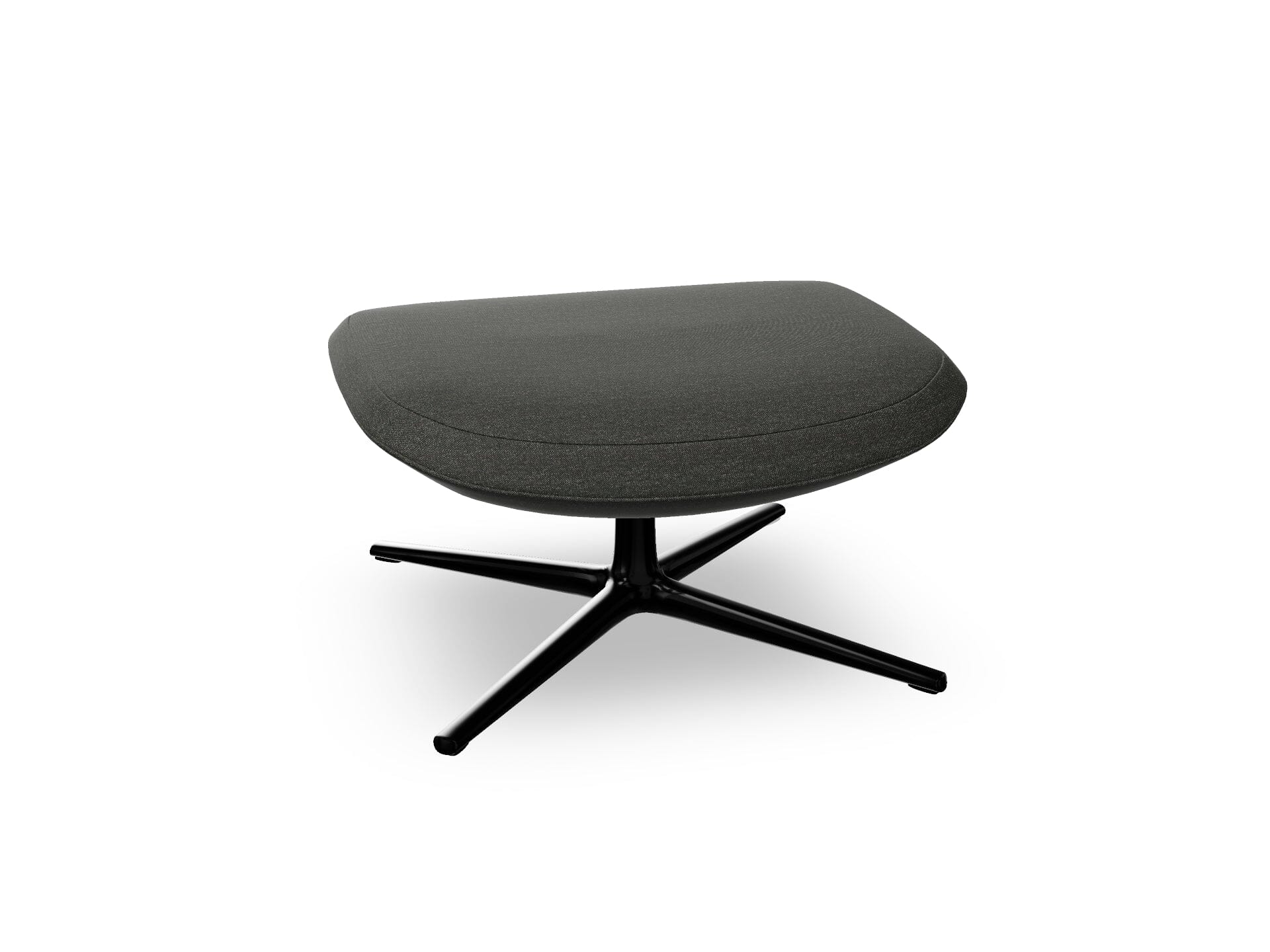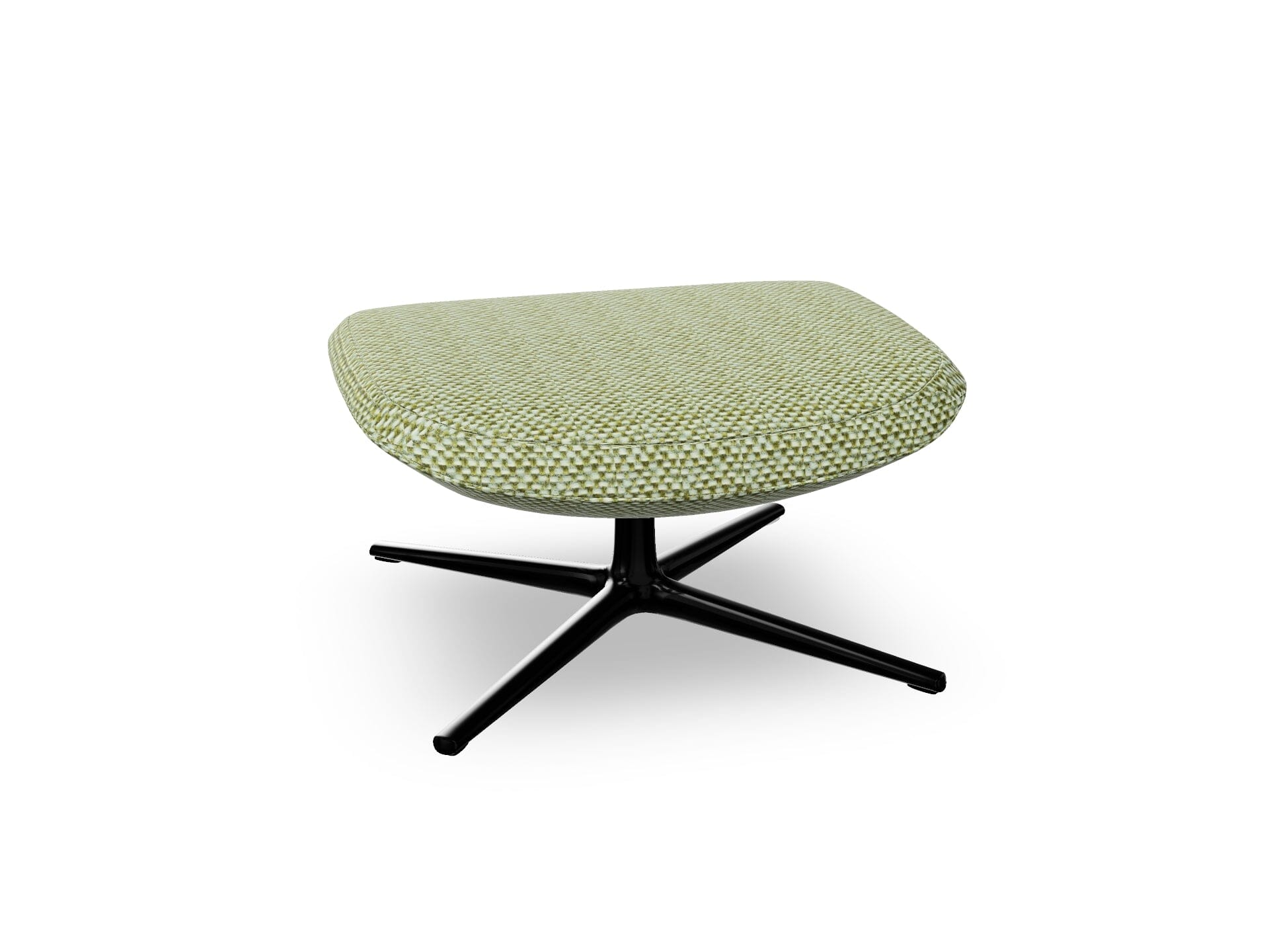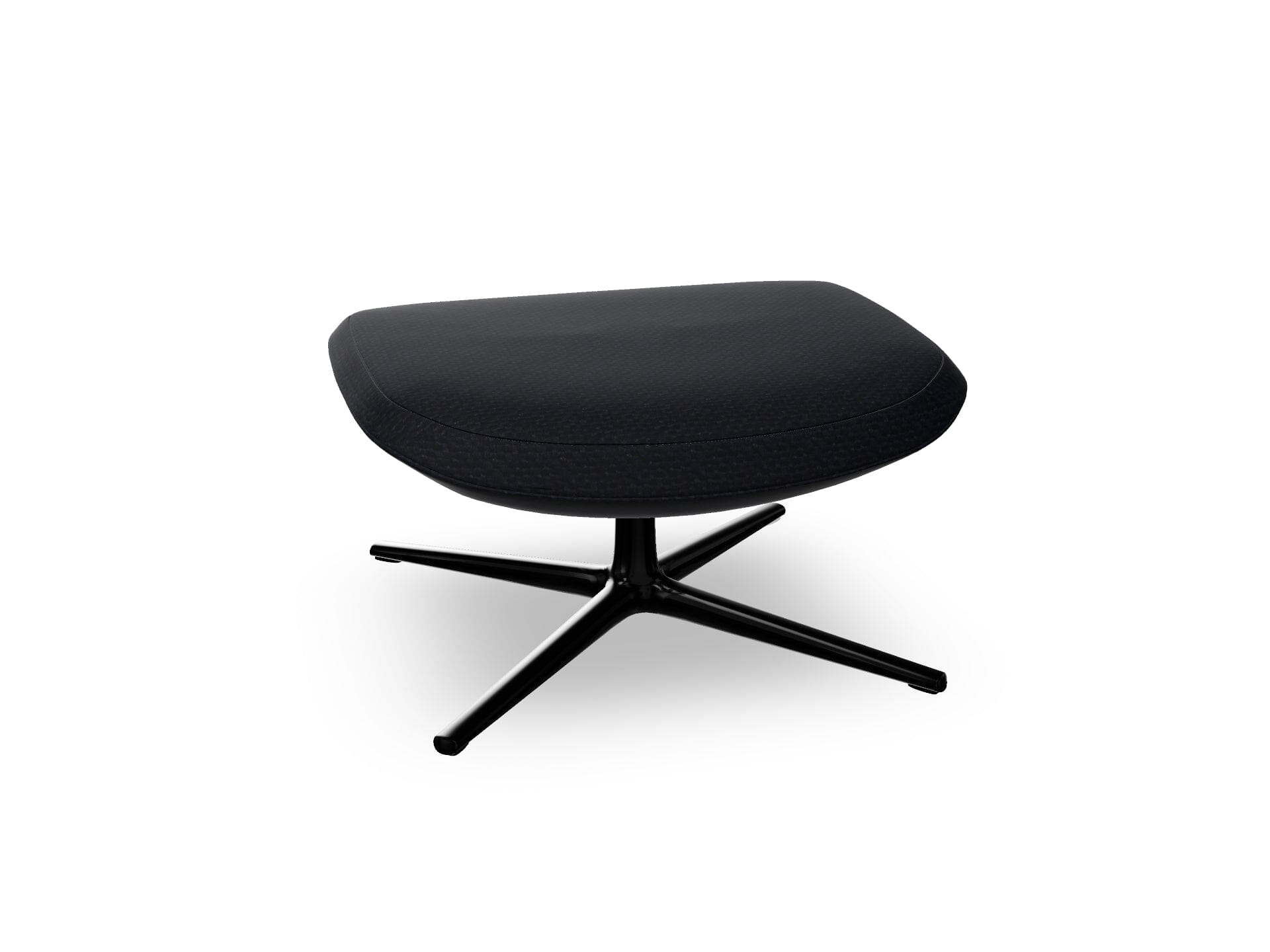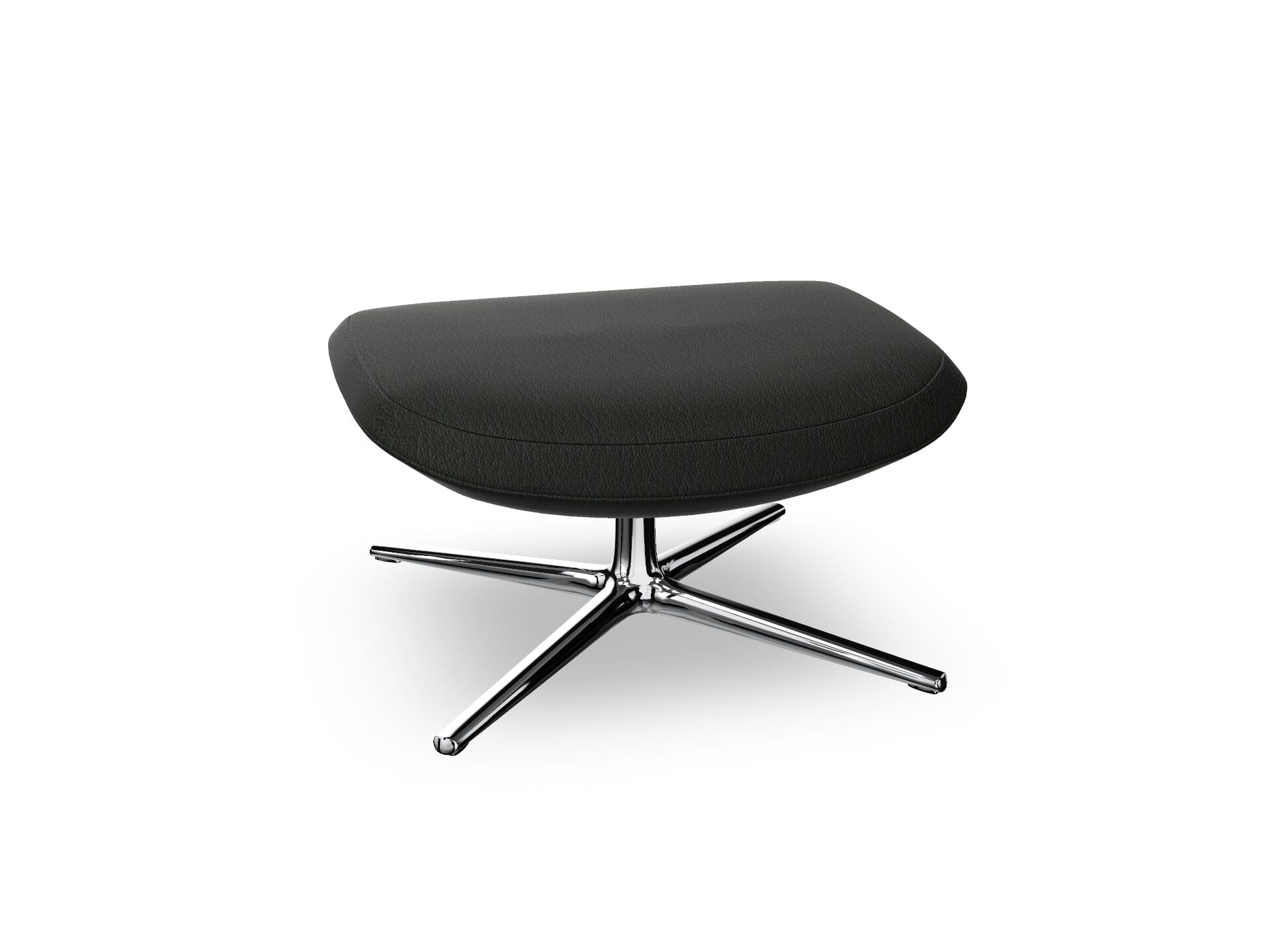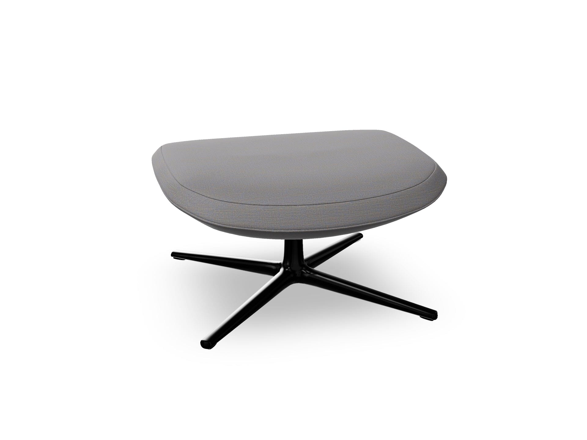 Footrest with four way swivel base in polished aluminum. The shell support is available with a polished or painted finish. The polyurethane shell is upholstered in leather, faux leather, fabric or customer’s fabric.