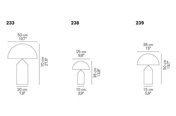 Atollo is the result in the shape of the union of cylinder, cone and half sphere. Timeless decorative lamp that restores value in its very simplicity, it won the Compasso d’oro award, completely revolutionizing the way of imagining the classic lampshade.