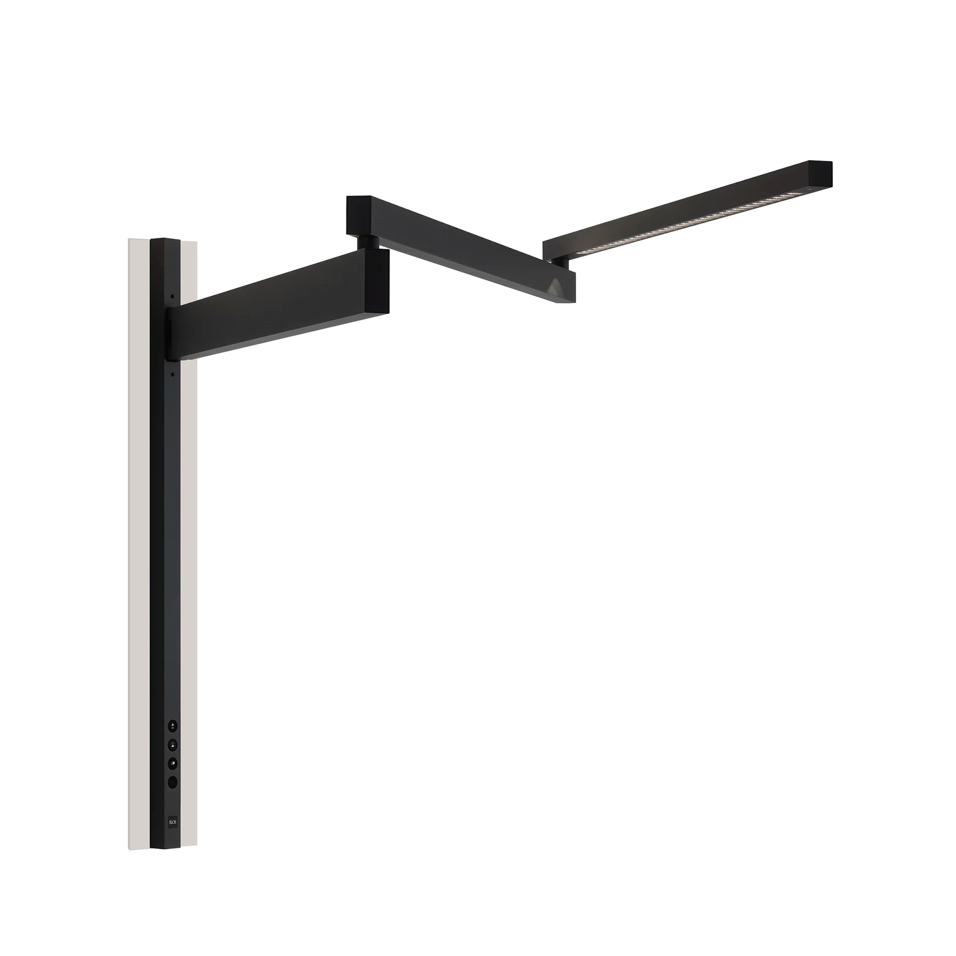 Black Flag is an extendable wall light that offers flexibility of illumination thanks to the expanding aluminium arm reaching up to 3.5meters from a wall-mounted frame of the same material. Wall lamp and sculptural centre piece, Black Flag embodies Grcics industrial design expertise and demonstrates the experimental opportunities of his approach mixed with Flos technical expertise. The luminaire provides direct and indirect lighting. Greater Up/Down light intensity can be controlled through the dedicated touch buttons featured in the stem. Touch panel control integrated on the lamp arm for On-off and Up/Down dimming unified with on board button. Possibility of wiring from a light point or through an IEC plug. Color temperature 2700°K CRI 90.