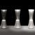 This lightweight lamp can be easily transported as needed and fits comfortably in hand. The body is composed of a transparent optical device with a gradient pattern to help carry and distribute light. Available in three colorways: polished copper, white, or polished aluminum.