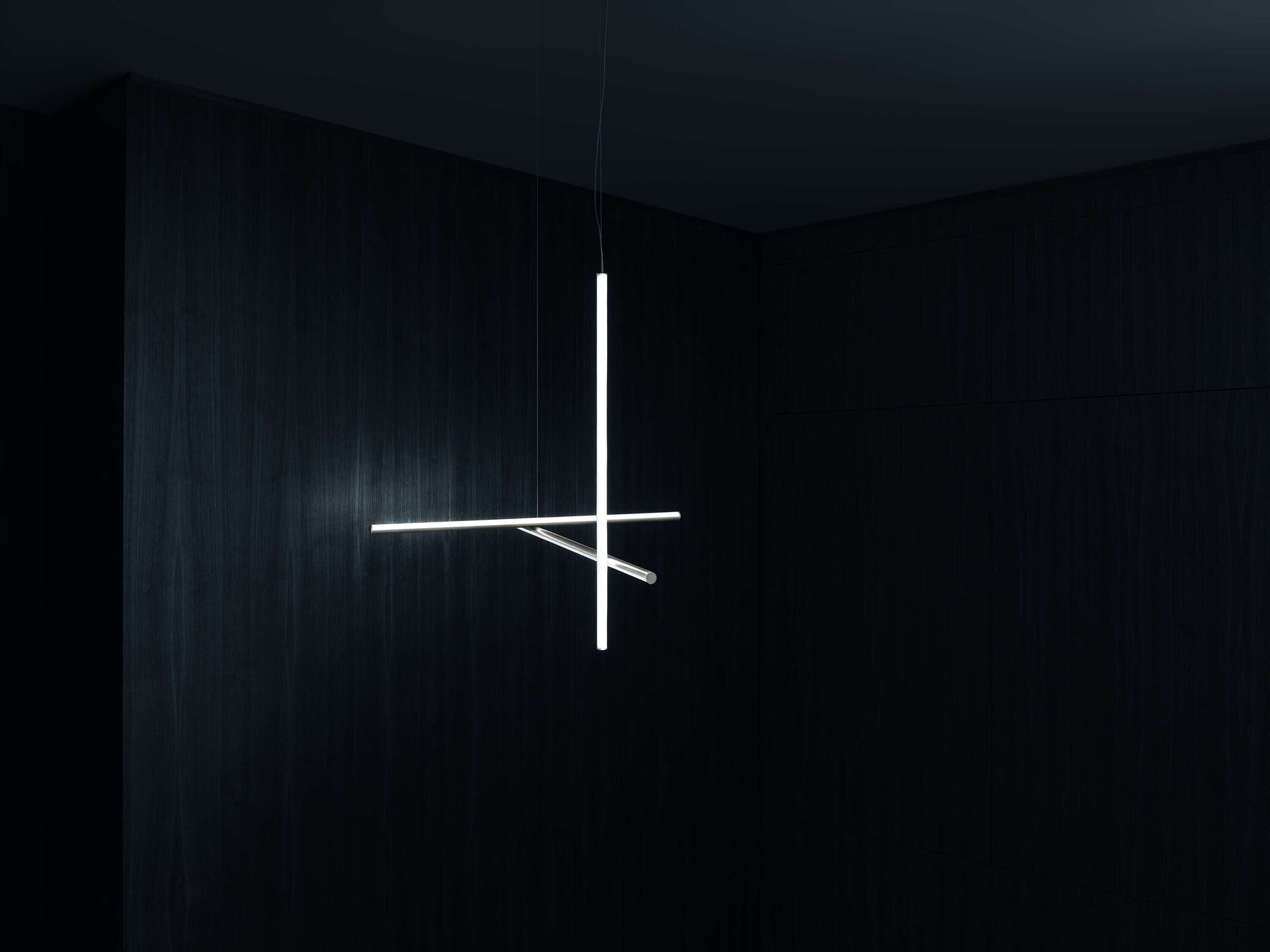 Coordinates is a lighting system consisting of horizontal and vertical strip lights that form illuminated grid-like structures of various complexities. This collection of standard chandeliers of pared-down configurations that can be used in any setting.