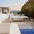 It is made of high quality materials, such as primer coated steel structure with micro textured polyester paint finish; one single compact fibre cement slab, which is tougher and more sustainable than slate; iroko wood details and special fabric for outdoor. A unique piece to live outside.