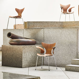 Arne Jacobsen's chair model 3108 was originally designed for the Danish central bank. It is also referred to as the "Lily™" and was first introduced at the Danish furniture fair in 1970. The chair is a result of an extremely complicated process that ensures the perfect curves and hence best comfort.