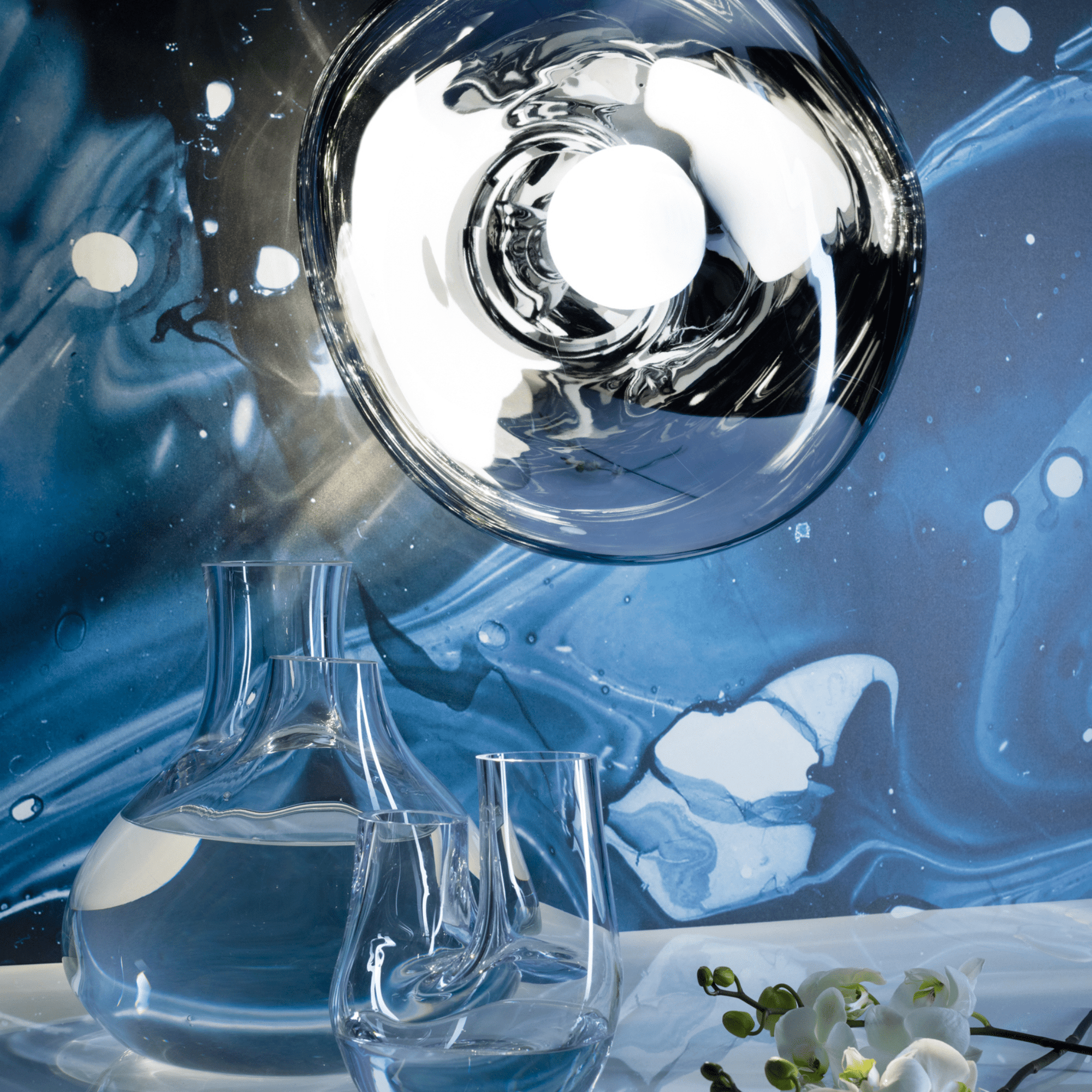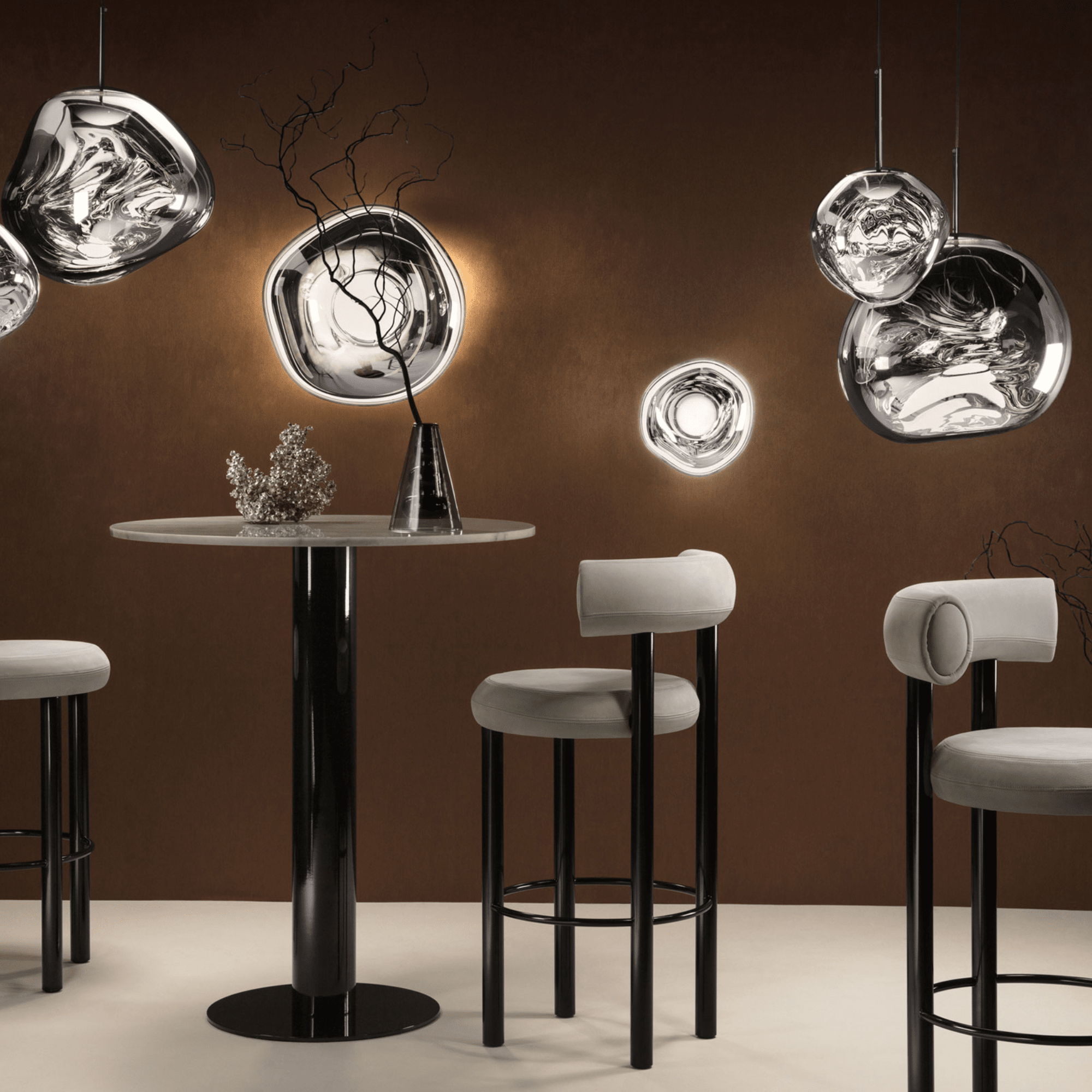 The range is blow moulded and vacuum metallised - techniques that have been developed over several years, working with German engineering and manufacturing experts. The LED module offers three key benefits - longer life expectancy, energy efficiency and improved performance including dimmability and light control. Our integrated LED module is fully serviceable and replacement components and individual drivers are available if needed. Melt also comes as a chandelier, table, floor and pendant light. Available in a contemporary Smoke, Silver, Gold and Copper finish.