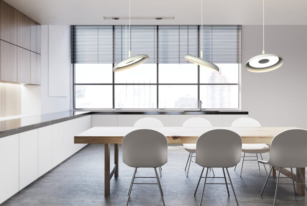Redefining the future in pendant illumination, Nivél’s pure and elegant silhouette features a colorful pallet of spun shade forms combined with an articulating flat panel LED light engine that pivots gracefully on axis to focus light downward or as a wall wash to provide seamless light control for any space. Nivél pendant can be suspended individually or in large multi-light clusters powered by a single hardwired canopy allowing the user to reposition the lights to any desired height, span and directionality. Available in 2 sizes: 15”(38cm) and 22” (56cm) and 6 powder coated finishes in matte white, Terracotta, Forest Green, Slate Blue, Espresso and textured black with choice of graphite or white fabric cord and ceiling canopy. Nivél will also be available in flush-mount variations in white for both sizes.