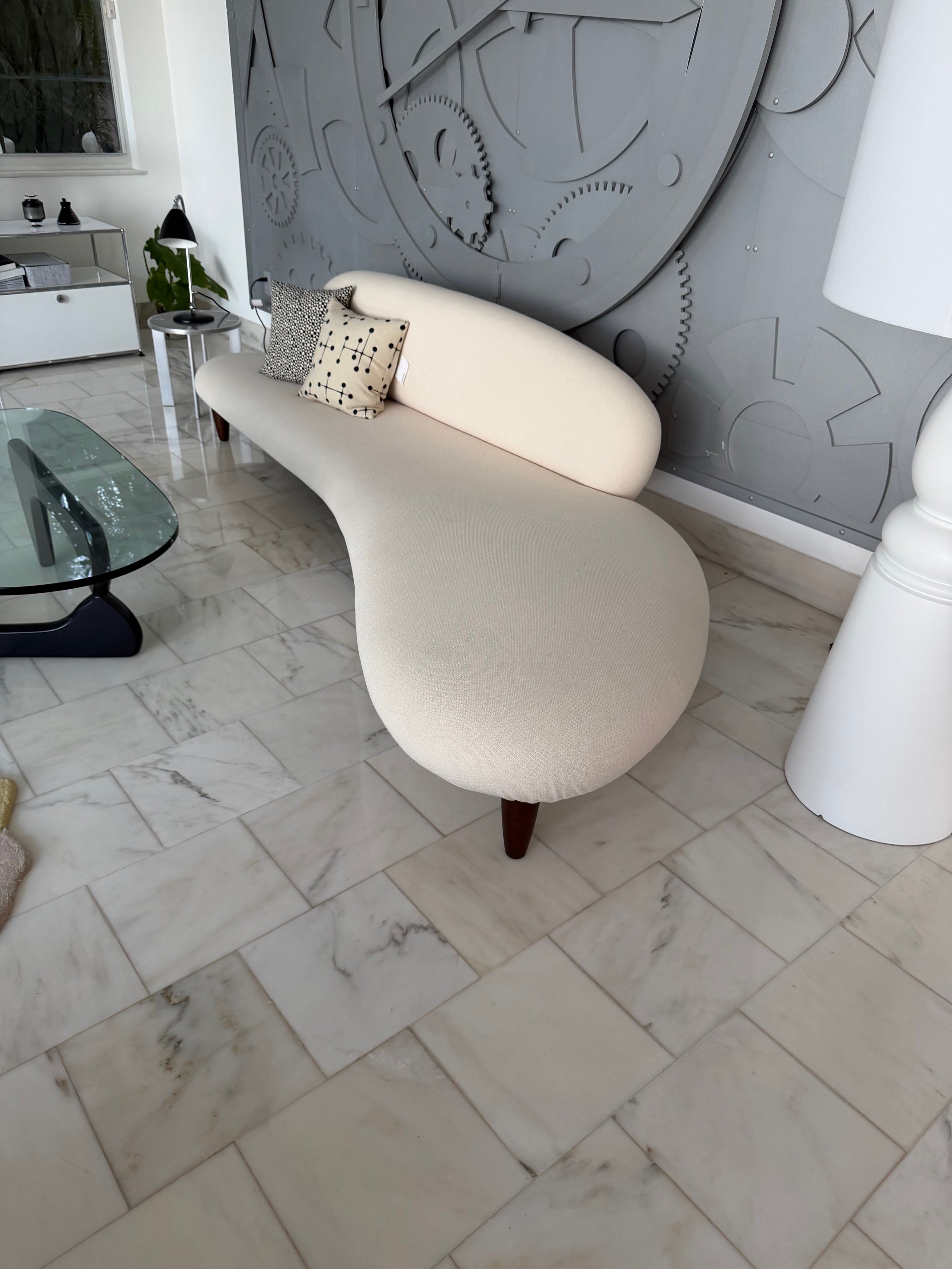 Noguchi 's sculptural style exerted a lasting influence on the whole organic design language of the 1950s. In co-operation with the Isamu Noguchi Foundation, the Vitra Design Museum presents the rare Freeform Sofa which up until now has been impossible to find. This exquisite example of mid-century biomorphic form was designed by Isamu Noguchi in 1946 for Herman Miller. Only a few were made at the time and the rare originals achieve record prices at auction. Made to the exact specifications of the original by the Vitra Design Museum under license from the Noguchi Foundation, the sofa is perfect for living rooms and also ideal for commercial applications in hotels, boutiques and reception areas.