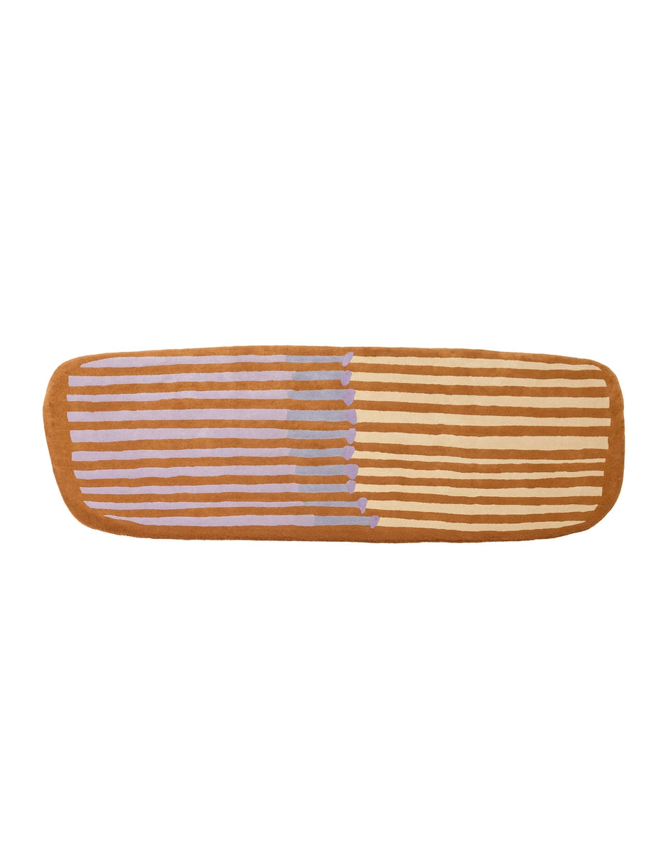 the new PARAYS rugs are designed for a colourful and enveloping living space, with a curly fabric in perfect harmony with the soft bouclé or mélange fabrics of the upholstery. The pattern is played on hatching in shades of green and blue or in the warmer tones of pink, purple and yellow. The shapes are the more elongated runner or square.