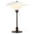 The iconic design of the PH 3.5-2.5 table lamp is combined with bright pops of color on the top spun aluminum shade. The two other shades are made of handblown opal glass that is shiny on the outside and matte on the inside for the optimal use of light. Features a matte brown brass stand. Ships with an 12 foot black cord with in-line on/off switch.