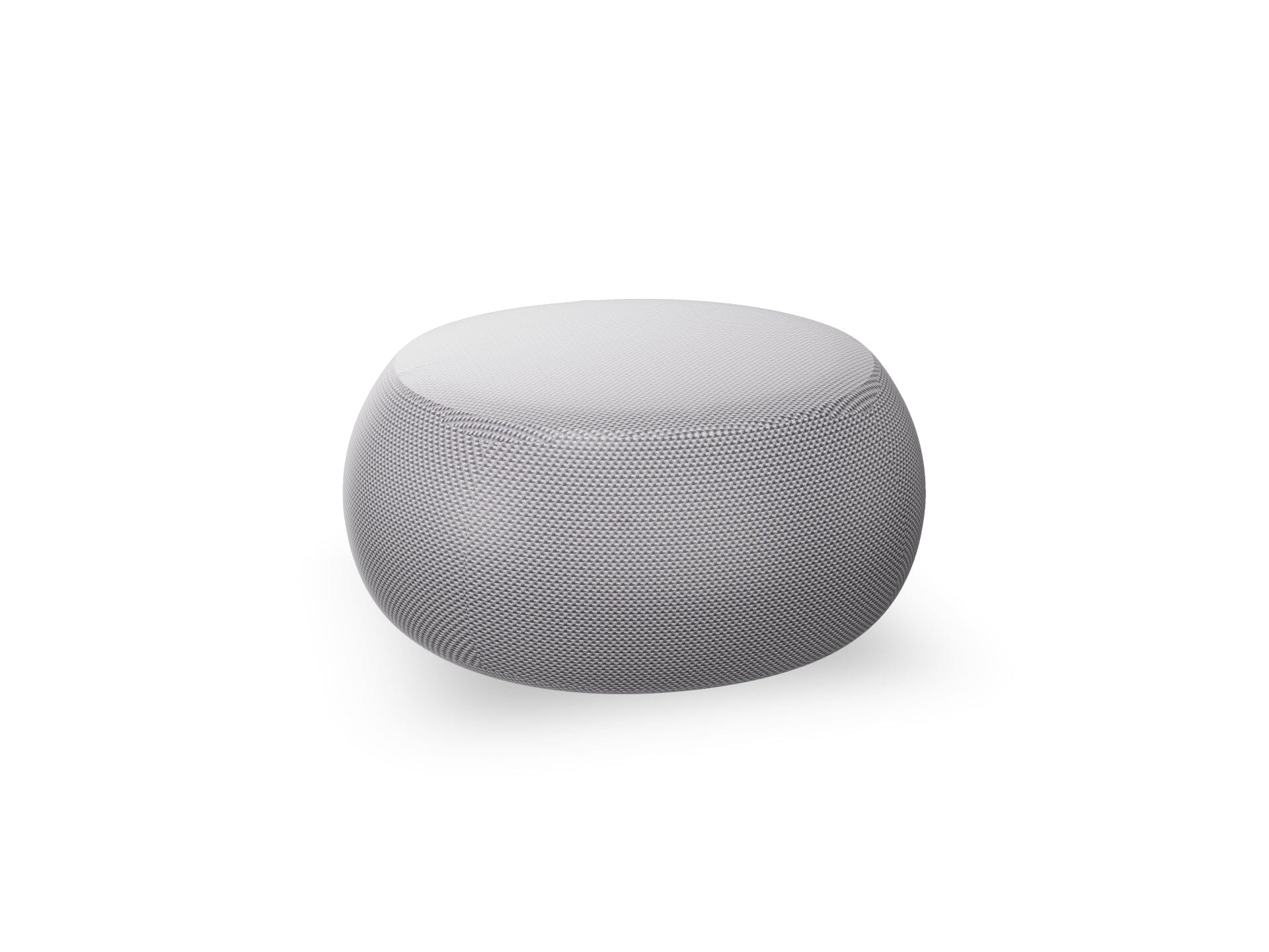 One large seat ottoman. Upholstery available in fabric, leather, faux leather or customer's material. A version suitable specifically for outdoor is also available, featuring a special flow-through internal foam and a polyester upholstery. Fitted with glides. Diameter 87 cm - 34 1/4''.