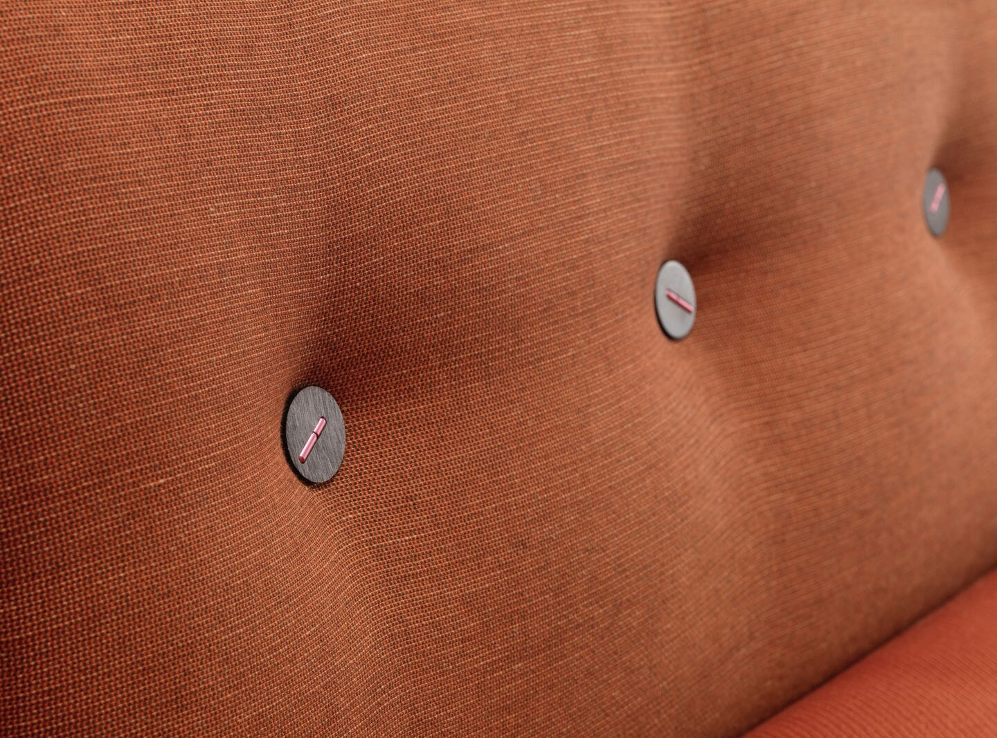 The distinctive character of Hella Jongerius's comfortable Polder Sofa derives from the combination of diverse fabrics and colours, an asymmetrical shape and charming details.