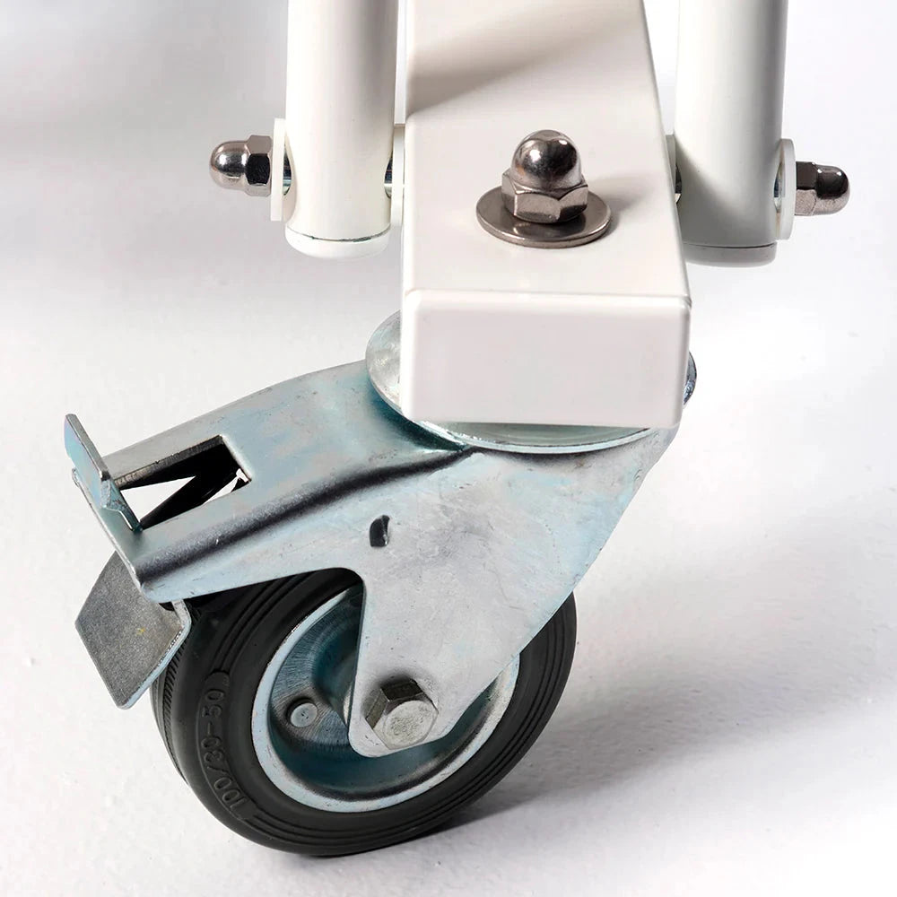 Once folded, using a simple mechanism, it takes up little space, and you can easily move it to the most convenient spot thanks to its tough all-terrain wheels.