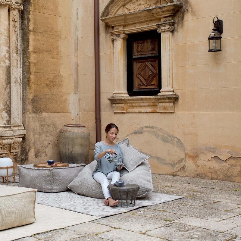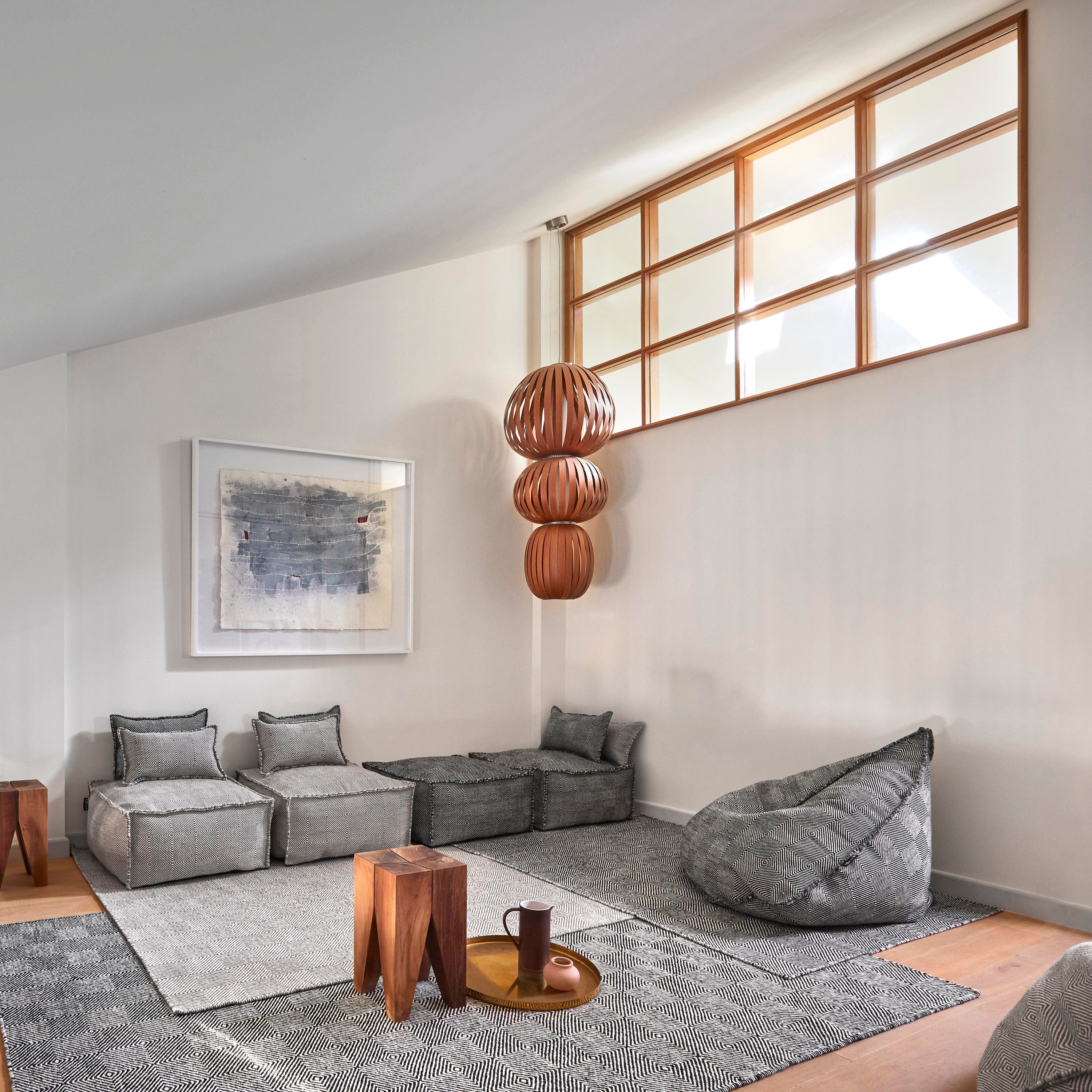 The Sail Pouf Ottoman by GAN Rugs is a stylish, ultra-comfy ottoman/lounge chair. Tailored with a beautifully textured 100% virgin wool upholstery, this chic, transitional design is both worldly and sophisticated, perfectly at home in Venice, Bali, or LA.