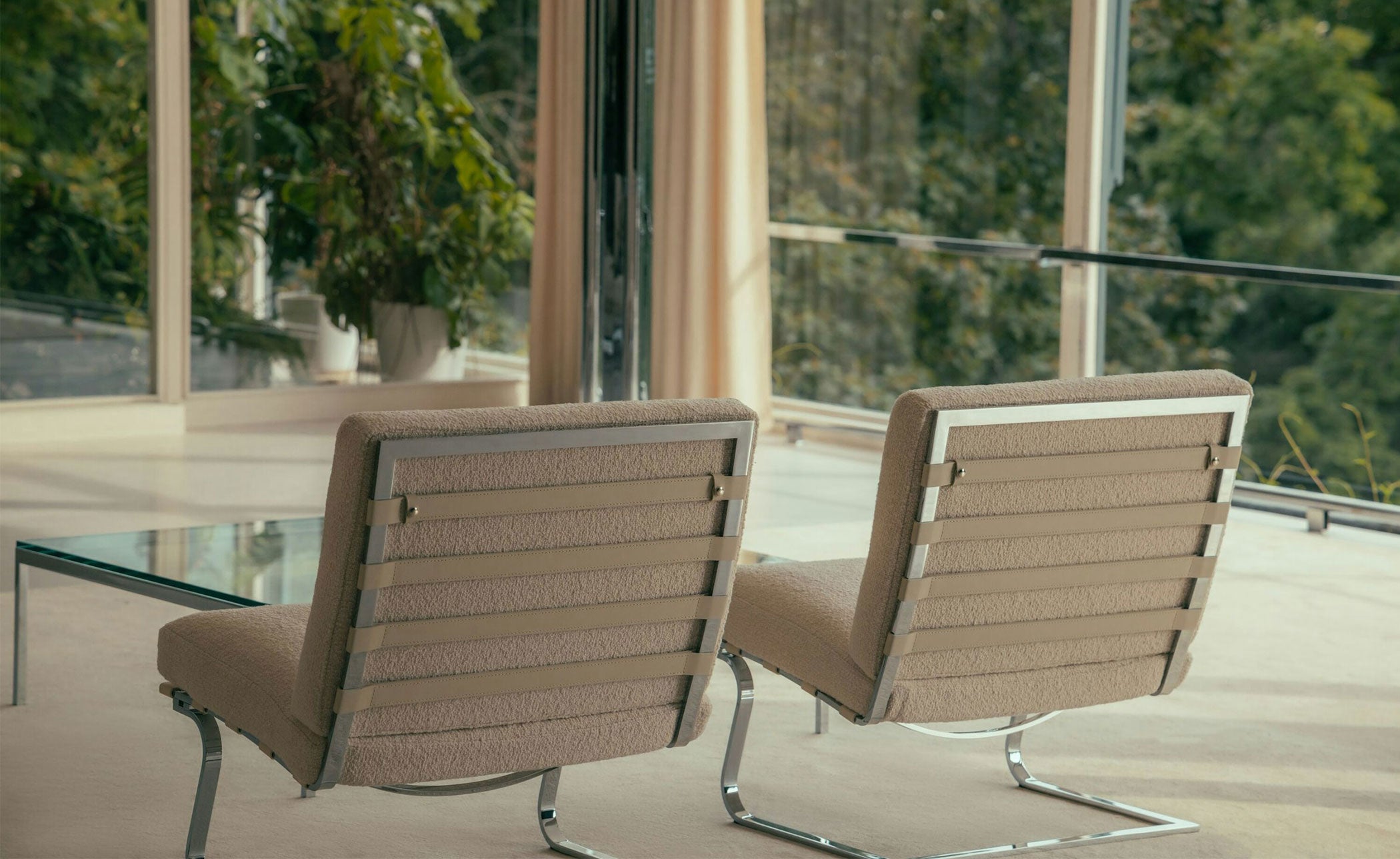 With its elegant, cantilevered form, the Tugendhat Chair embodies the technical precision and artistic intention that courses through everything Ludwig Mies van der Rohe designed. The steel frame is refined in both construction and materiality, while the thick cushions provide a high degree of comfort and inviting informality. This chair was designed in 1929 for the Tugendhat Villa in Brno, Czech Republic.