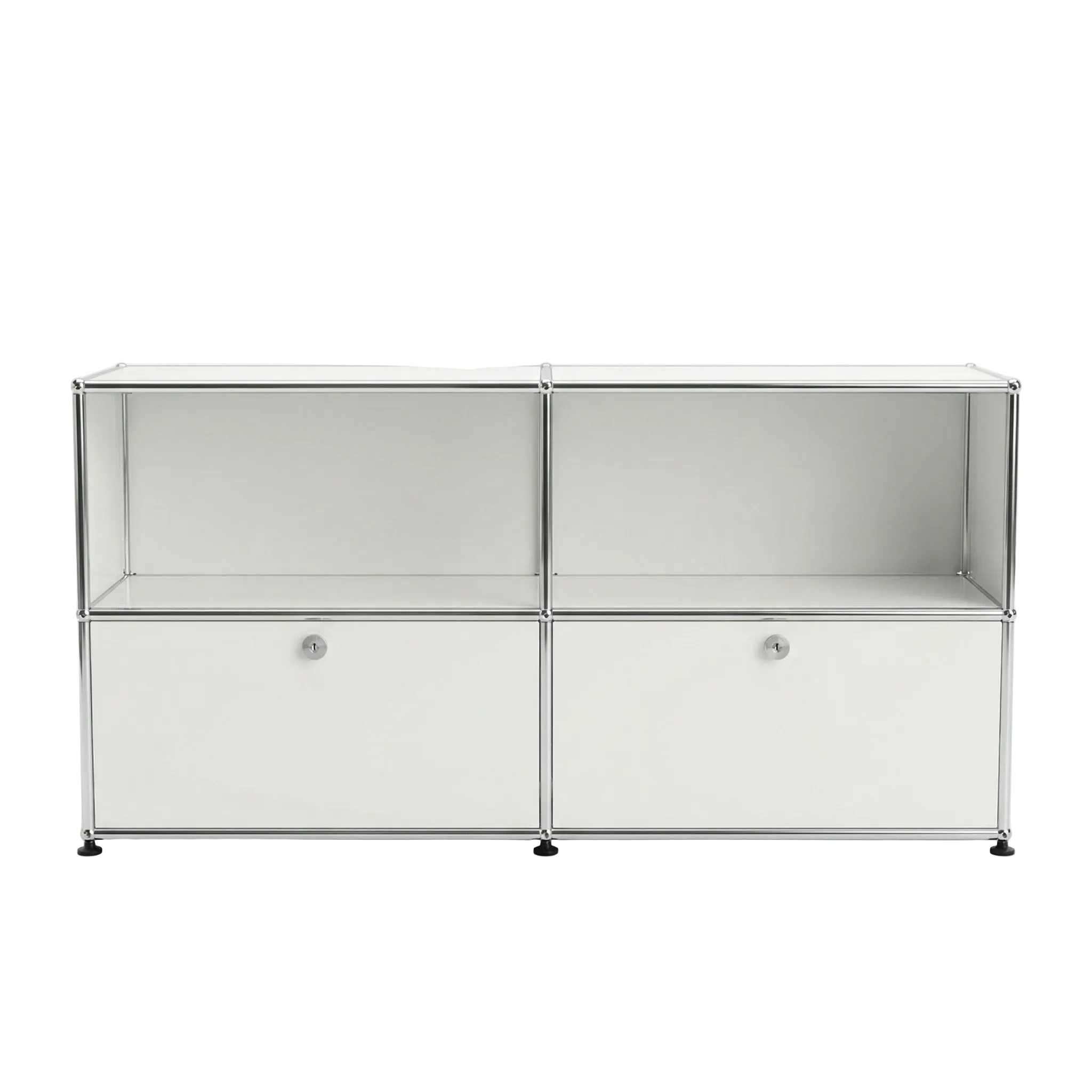 Designed by Swiss architect Fritz Haller and Paul Schaerer in 1963. Made from powder coated steel and chrome plated steel tubes, the USM Haller system is built to last for generations and adapt as your needs change. Made in Switzerland.