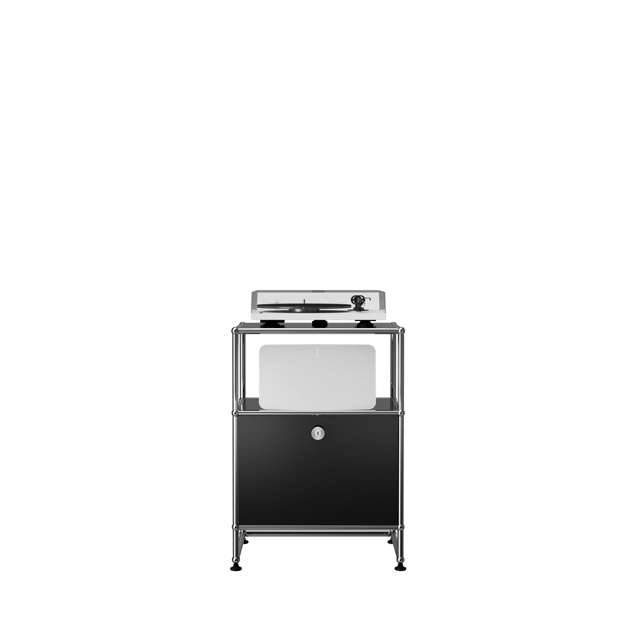 The USM x Symbol Record Stand is an incredibly efficient way to integrate an all-in-one vinyl listening station into your home. The expandable system can accommodate both casual listeners and hardcore audiophile collections. The 21” Record Stand offers an all-in-one solution to store up to 100 records, audio components, and a turntable. Soft-close drop-down door.